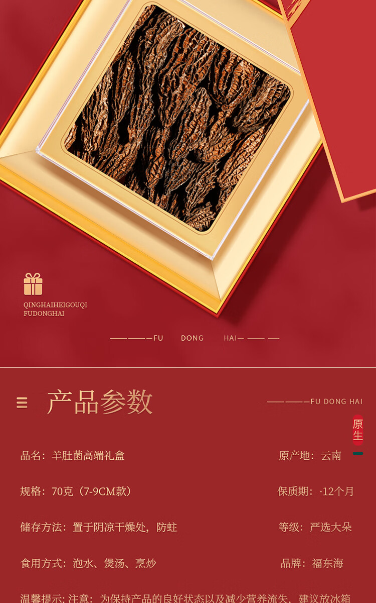 【福东海】 福牛羊肚菌70克福牛礼盒装大颗 100010037263