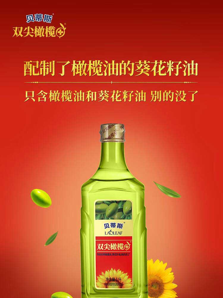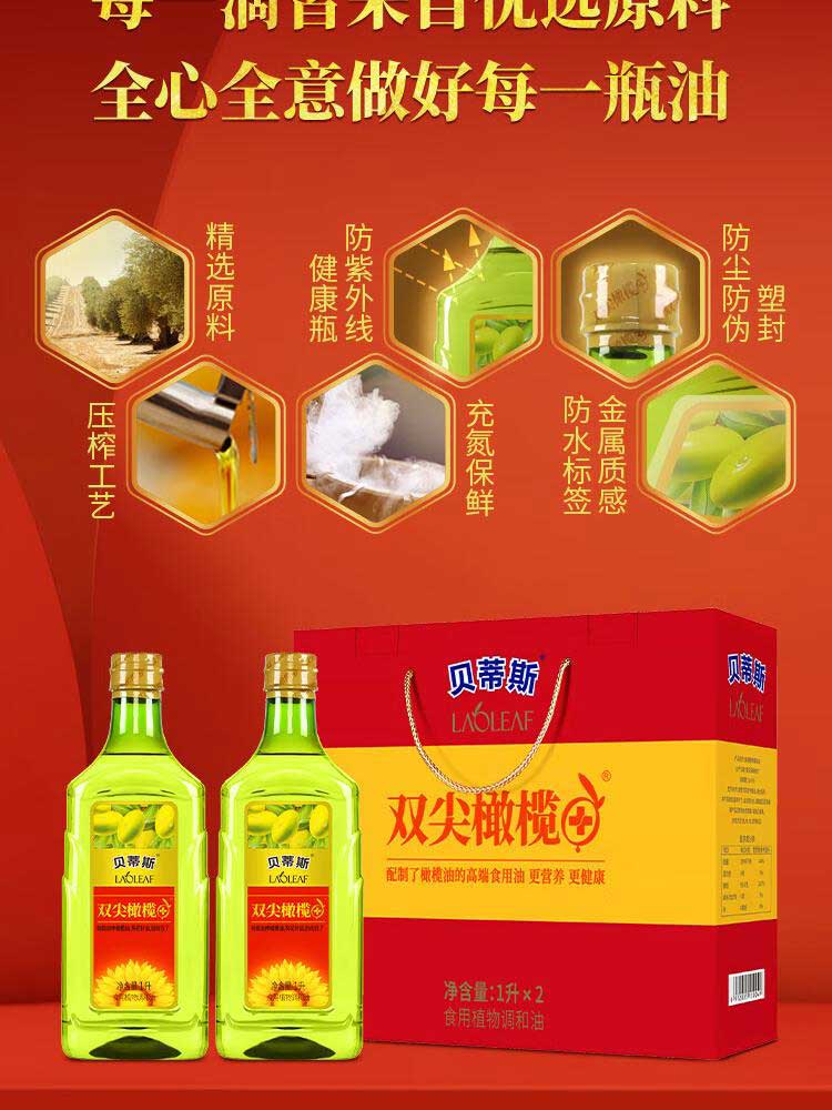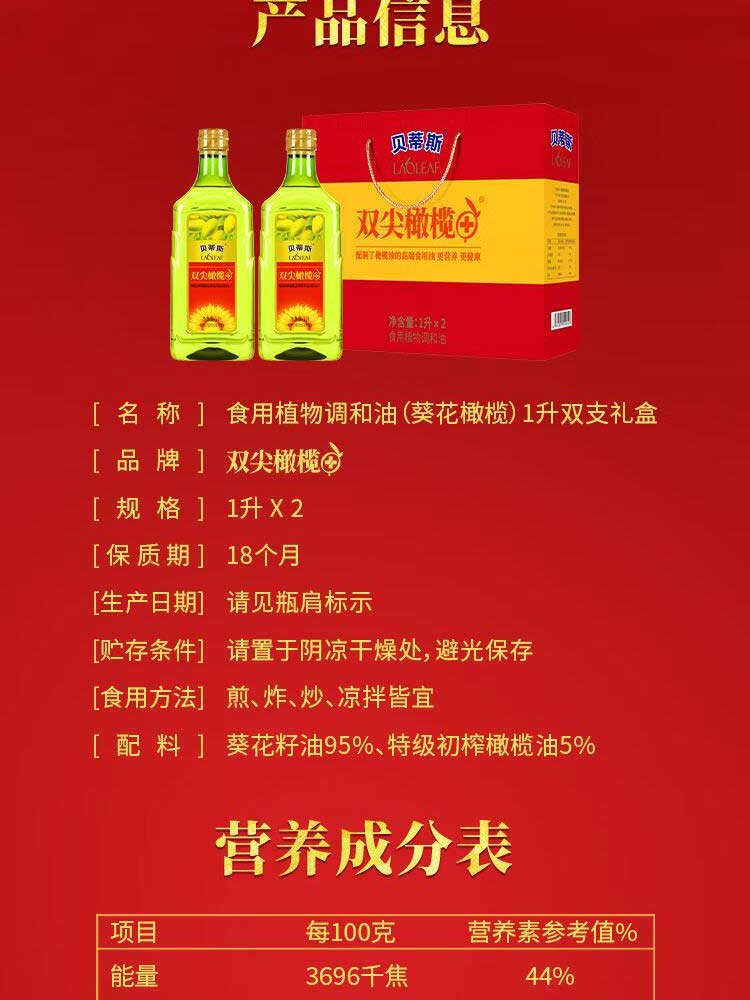 贝蒂斯食用植物调和油(葵花橄榄)1L*2礼盒装