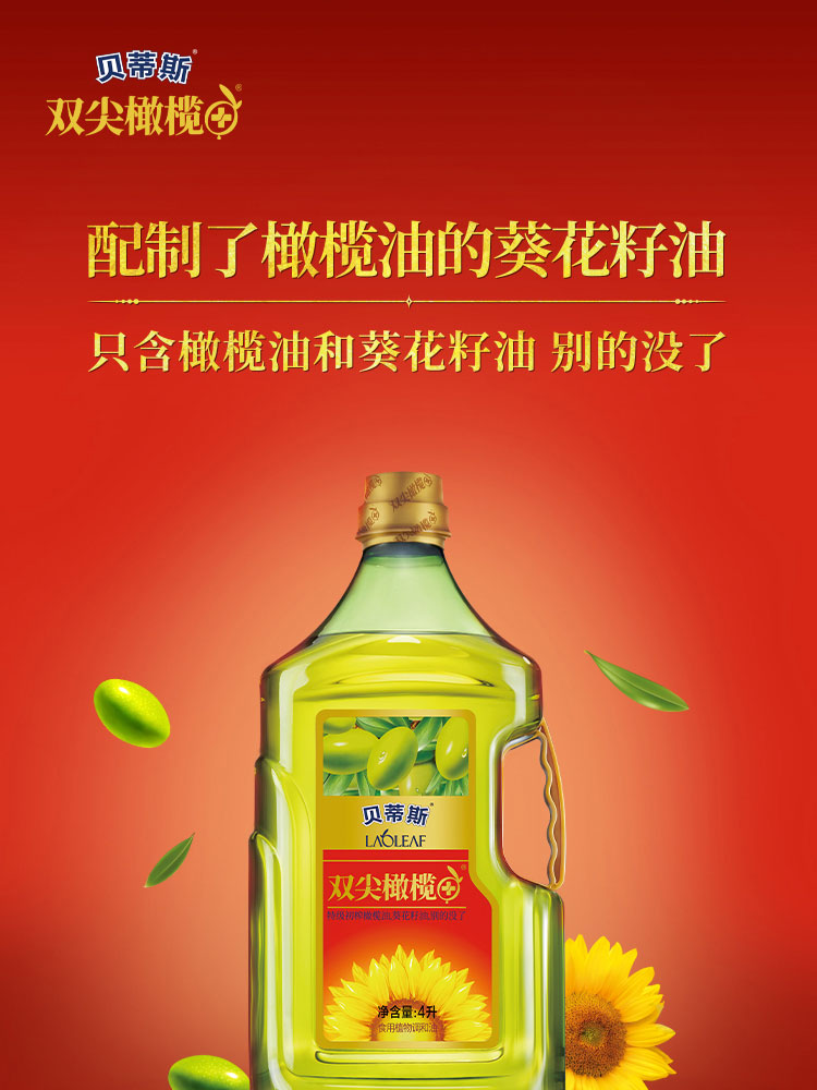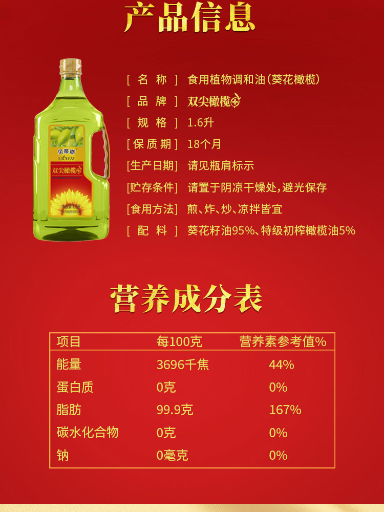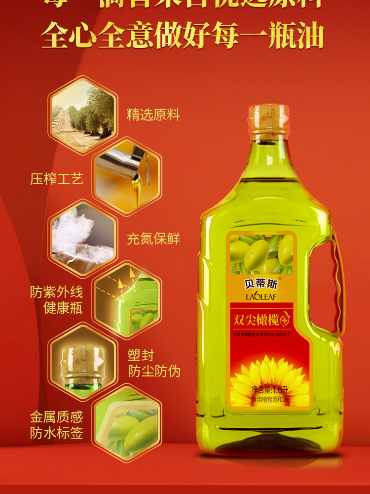 贝蒂斯食用植物调和油(葵花橄榄)1.6L*1瓶装