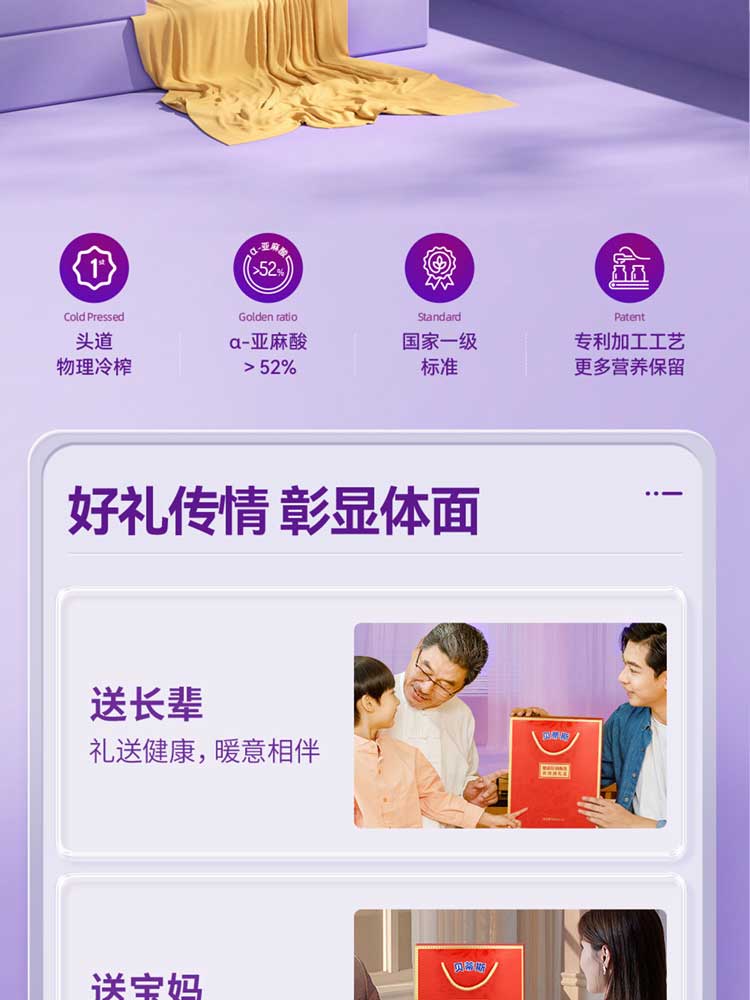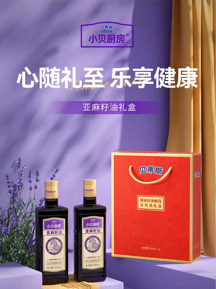 贝蒂斯小贝厨房亚麻籽油500ml*2礼盒装