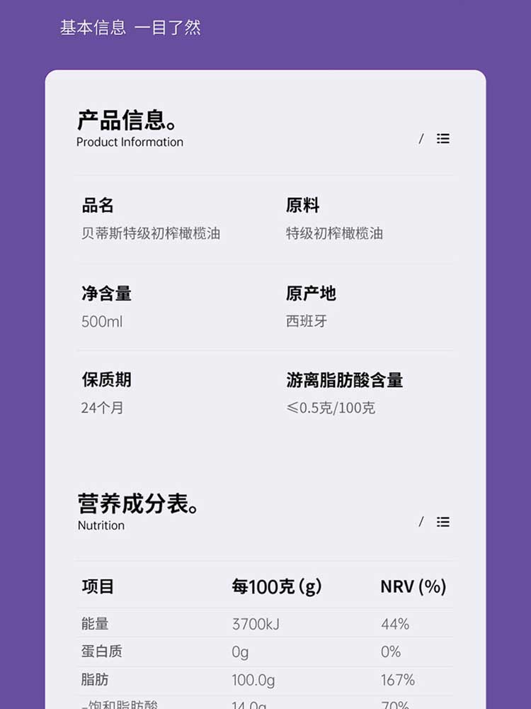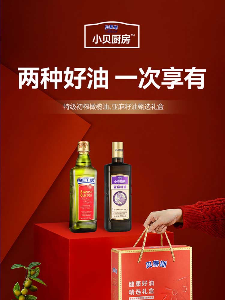 贝蒂斯特级初榨橄榄油+亚麻籽油500ml双支礼盒