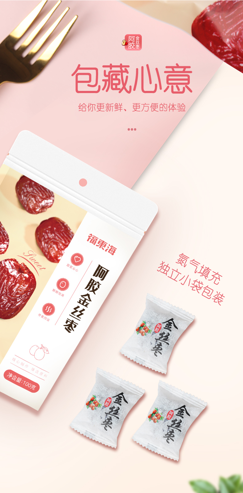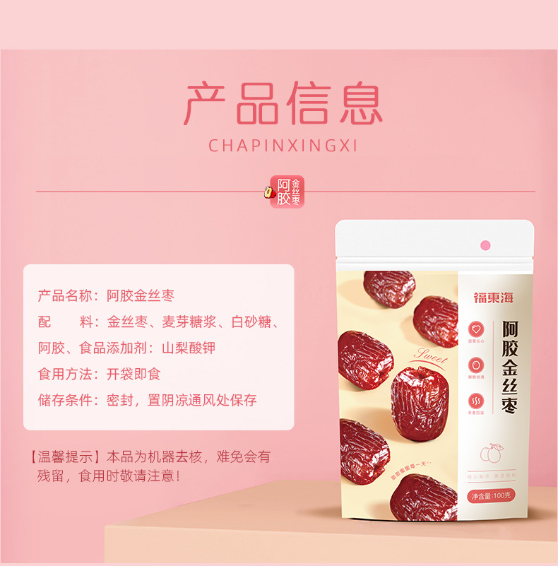 【福东海】阿胶金丝枣100克/袋*3袋 FDH07020007-3