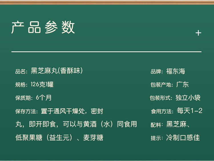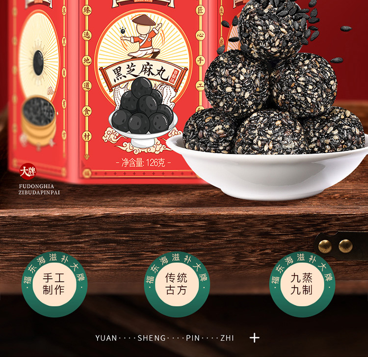 【福东海】黑芝麻丸126克/盒(香酥口味-铁罐)*2盒 FDH04010041-2