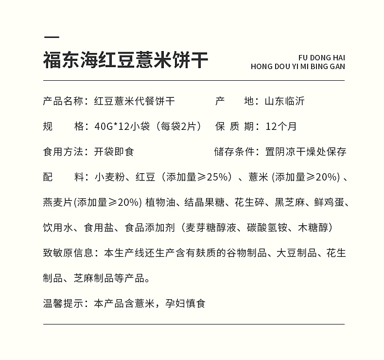 【福东海】红豆薏米饼480克/3袋 FDH1951-3