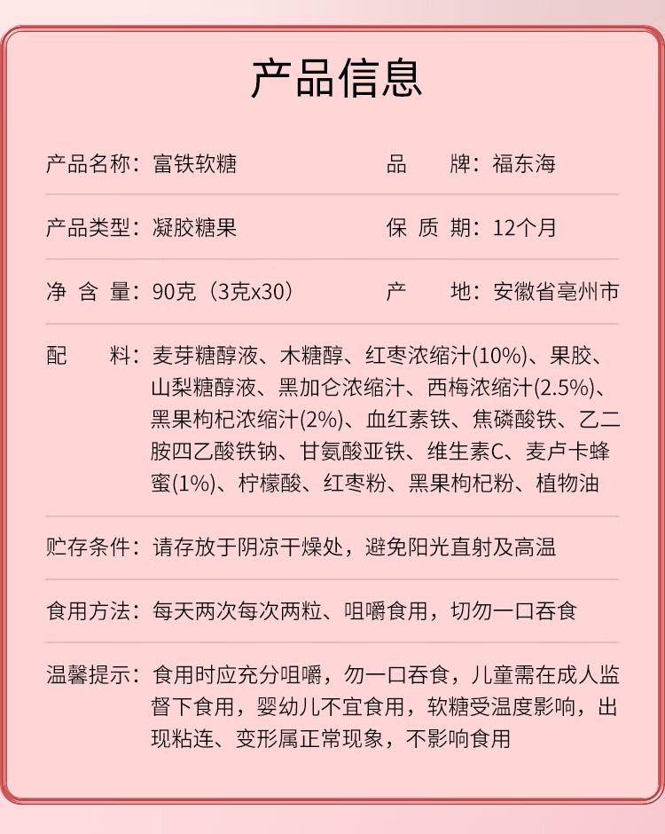 【福东海】富铁软糖90克(3g*30克 )/盒FDH07010029