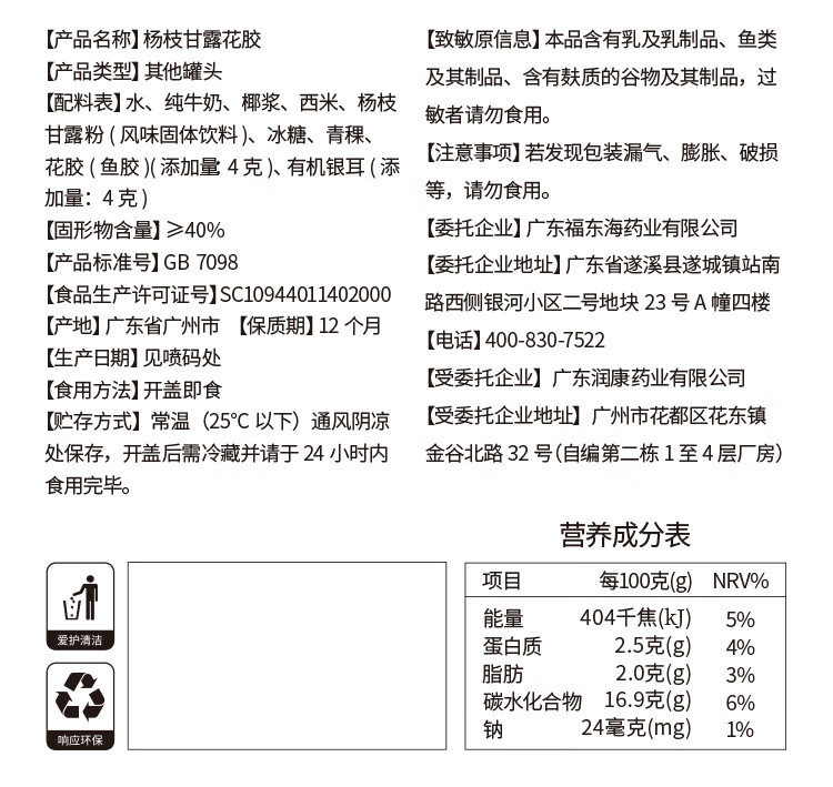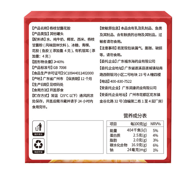 【福东海】杨枝甘露花胶羹 165克/盒 FDH05020087