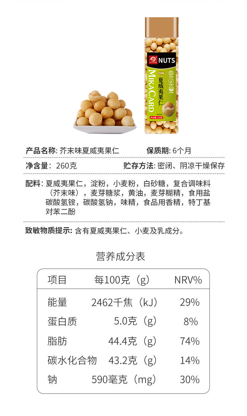 天生好果芥末味夏威夷果仁260克