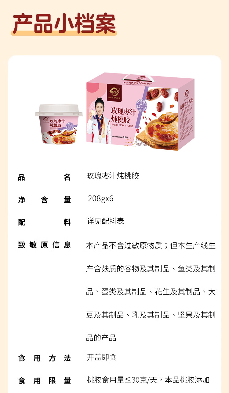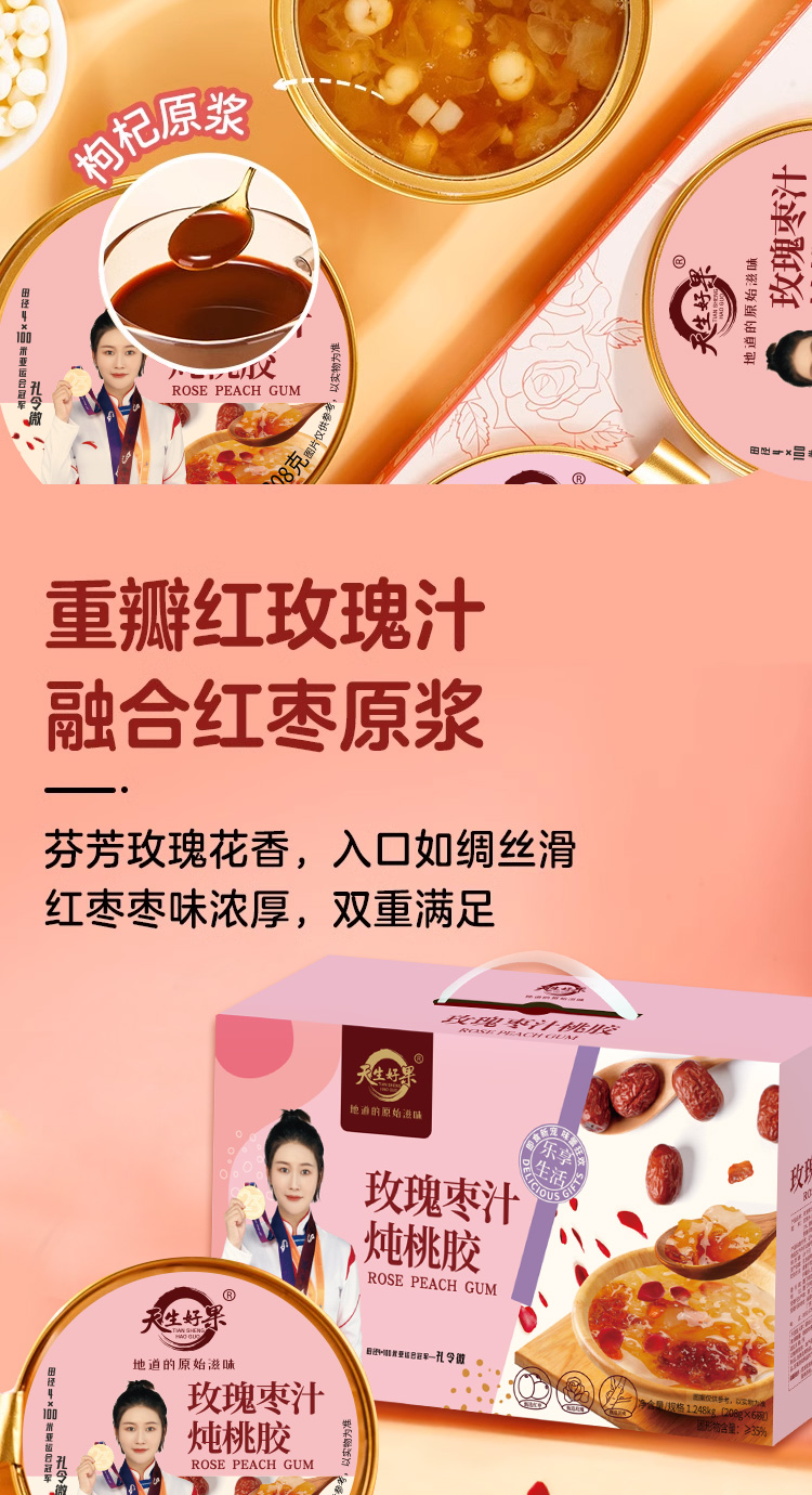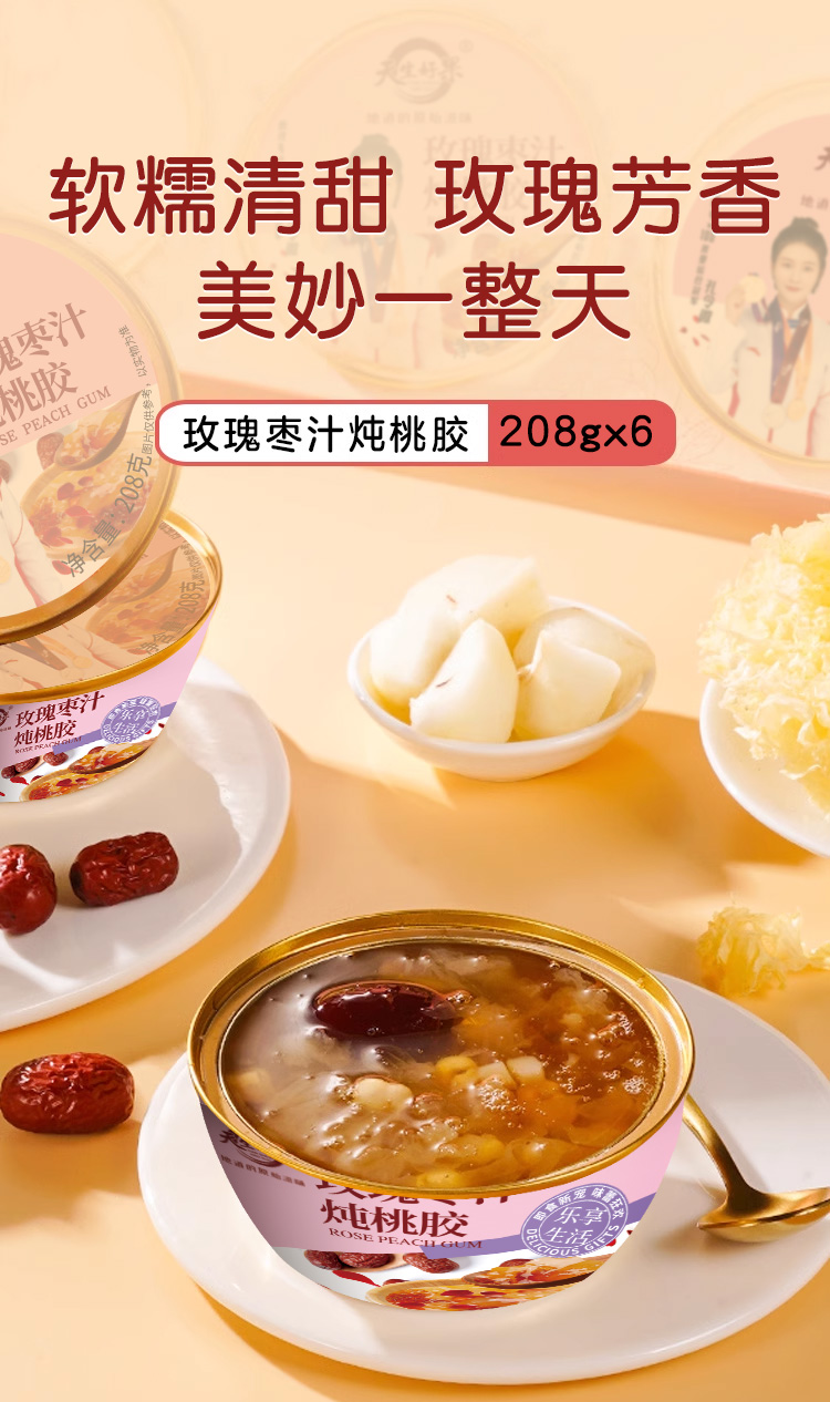 天生好果 玫瑰枣汁炖桃胶1248款(208g*6碗)