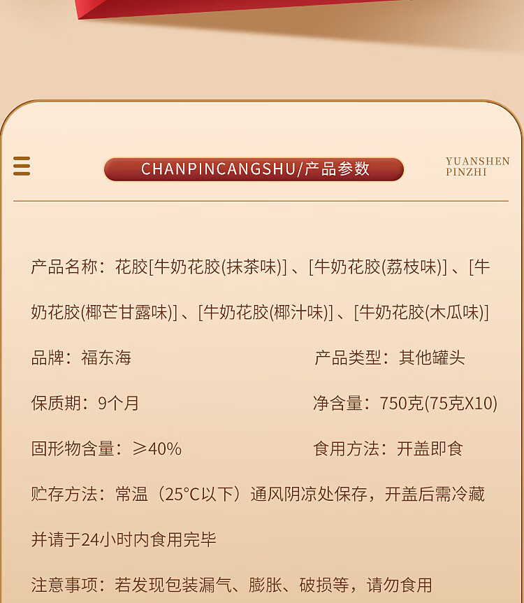 【福东海】花胶奶冻750克(75克x10瓶)/盒(配礼袋)FDH05020012