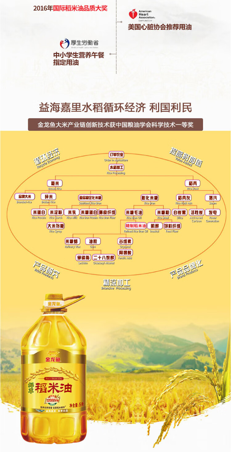 金龙鱼鲜萃稻米油5L/瓶 188107