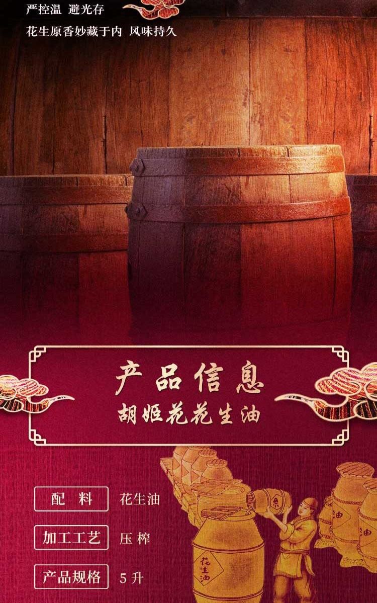 胡姬花金衣玉食古法花生油5L/瓶 634210