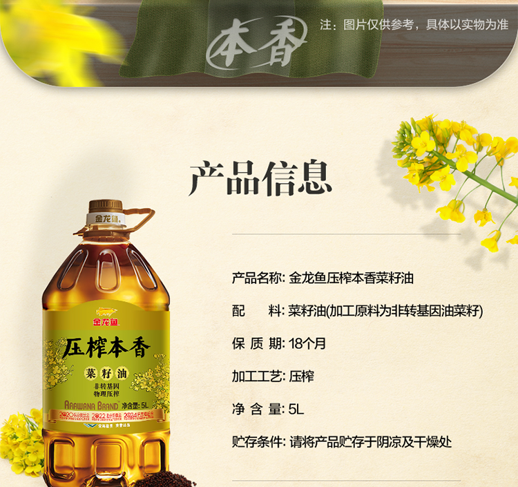 金龙鱼压榨本香菜籽油5L(非转压榨)688143