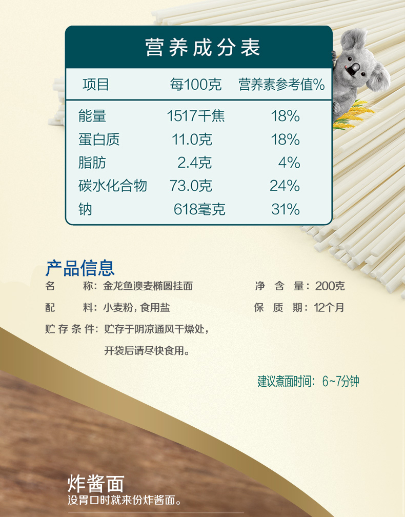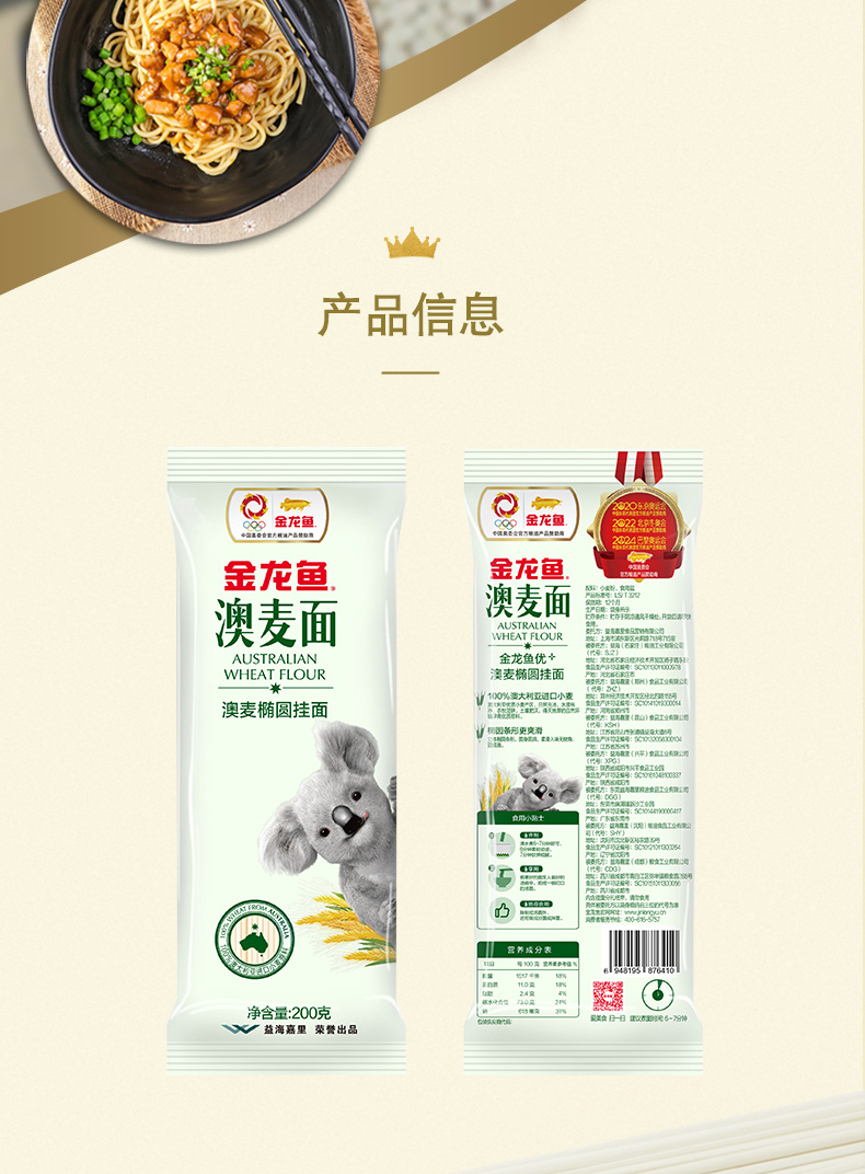 金龙鱼澳麦椭圆挂面200g*5袋 681674