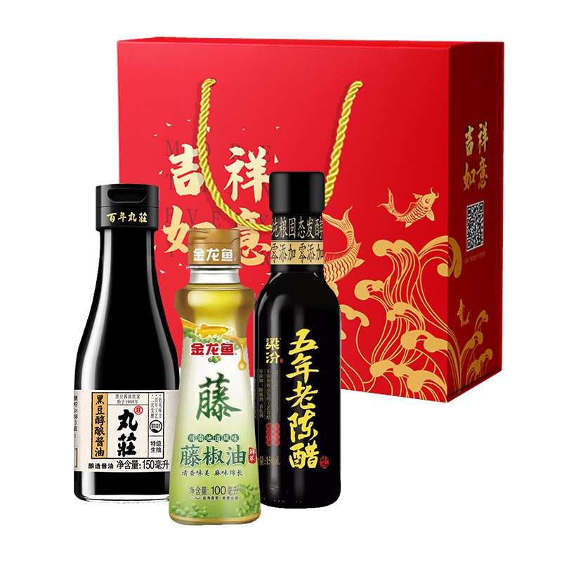 丸庄酱油(醇酿)150ML+金龙鱼藤椒油100ml+梁汾老陈醋150ml(礼盒装)637558