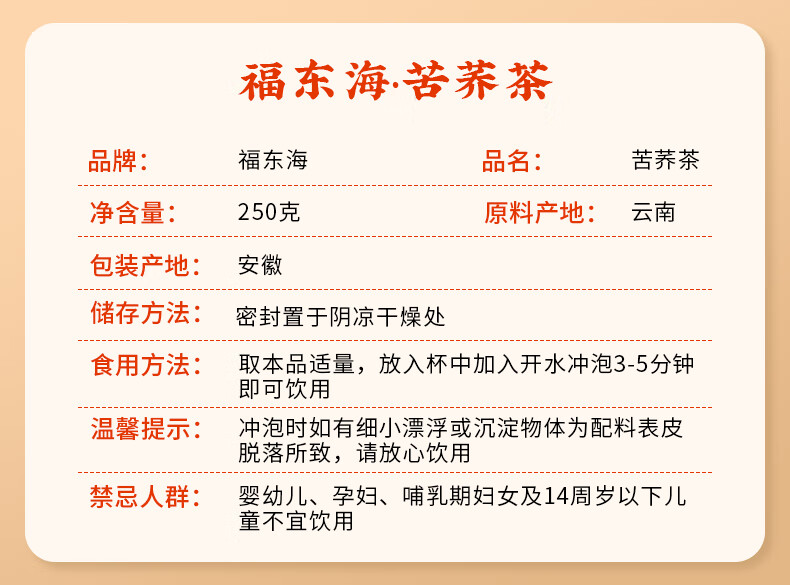 【福东海】苦荞茶250克/瓶 FDH01010598