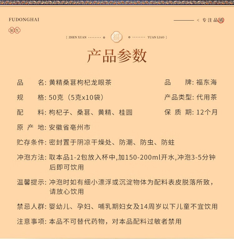 【福东海】黄精桑葚枸杞龙眼茶50克(5克x10袋) FDH02010238
