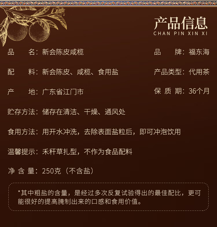 【福东海】新会陈皮咸榄250克/瓶 FDH01011353