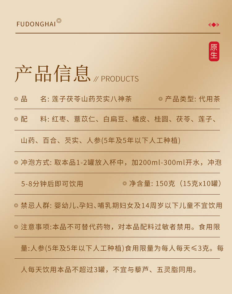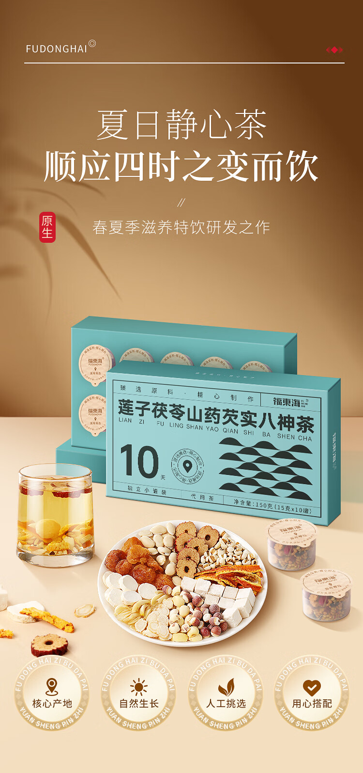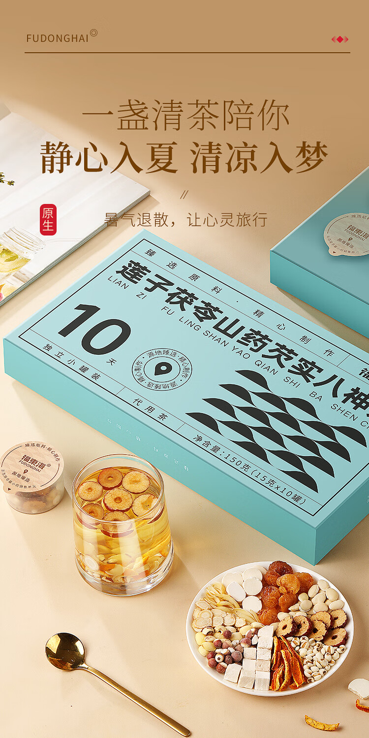 【福东海】莲子茯苓山药芡实八神茶150克(15克x10罐)/盒 FDH02010298
