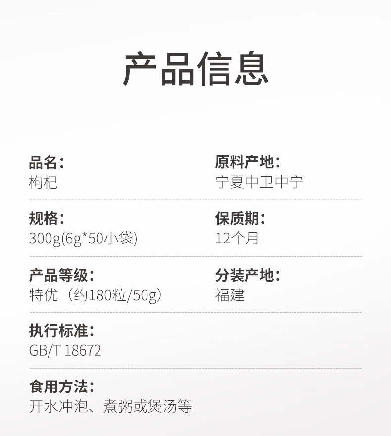 【方家铺子】六星枸杞300g(6g×50)/袋装