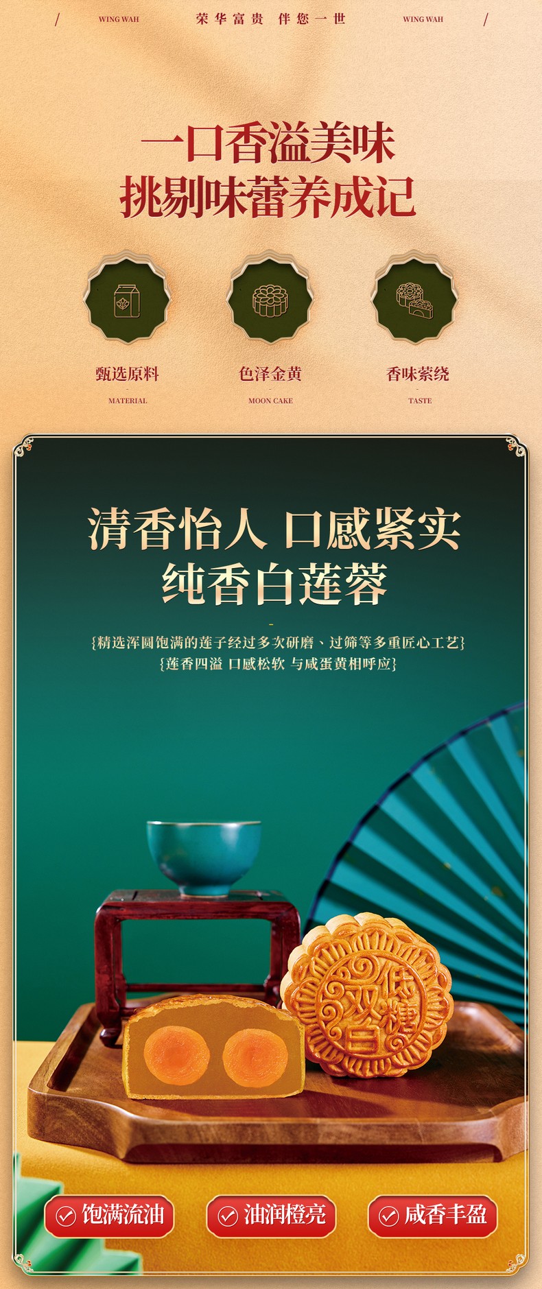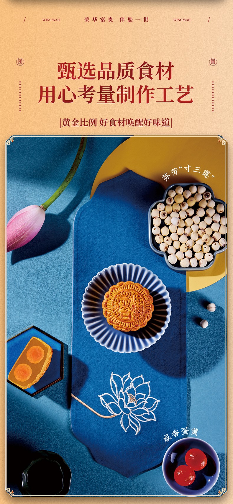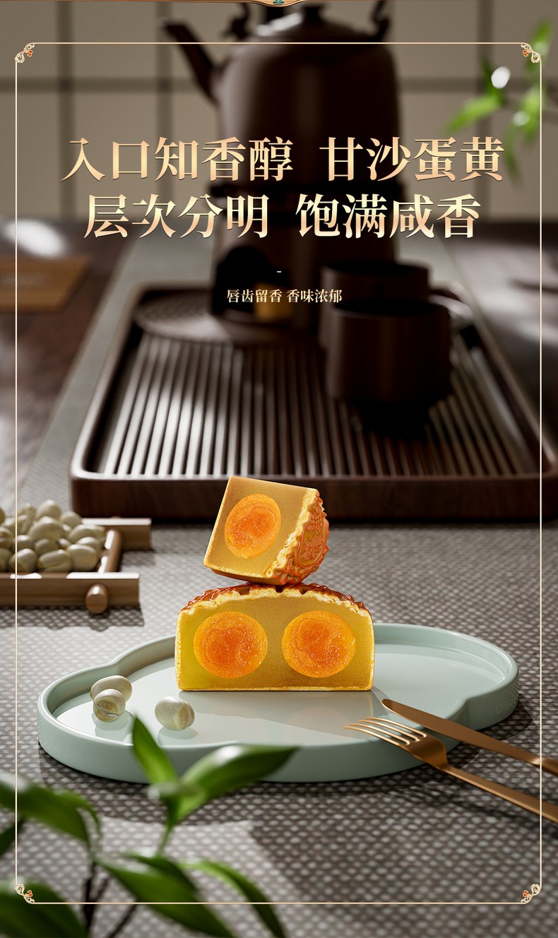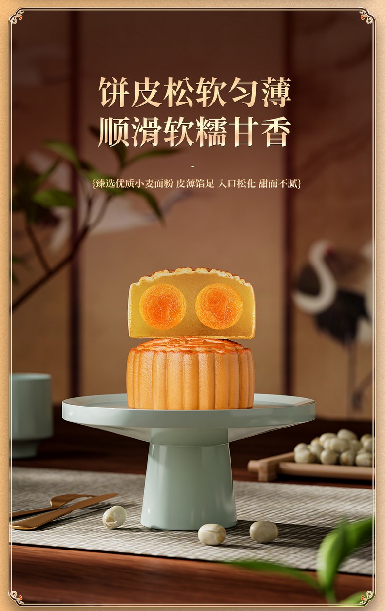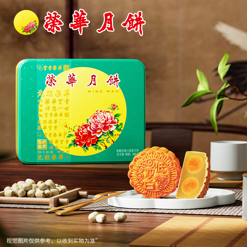 荣华花好月圆系列低糖双黄白莲蓉月饼 月饼礼盒600g