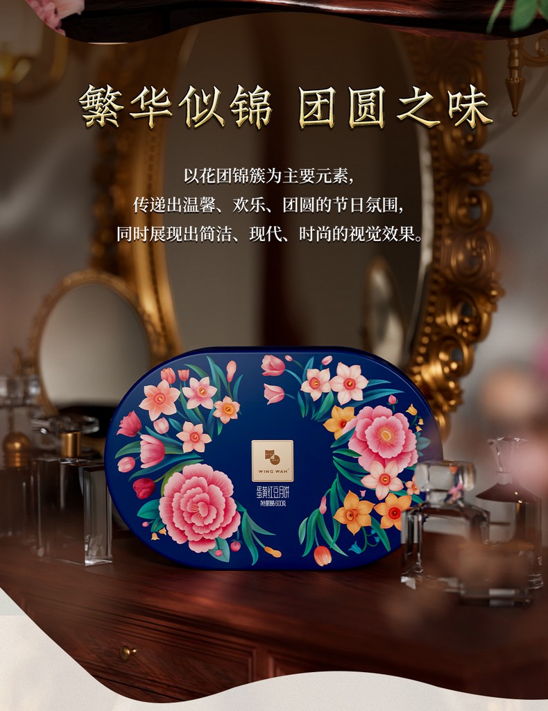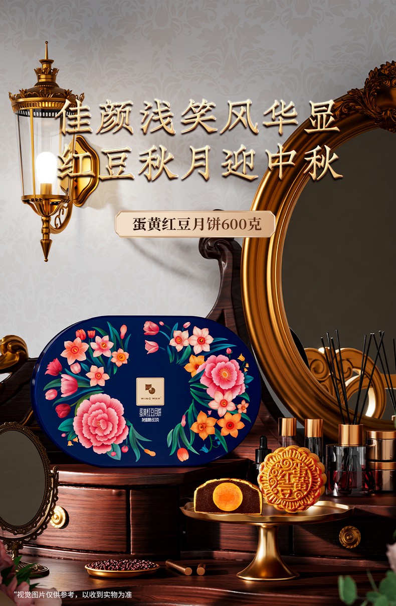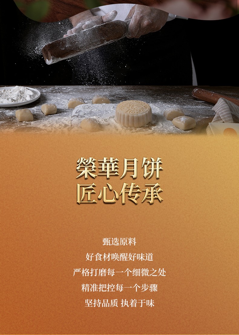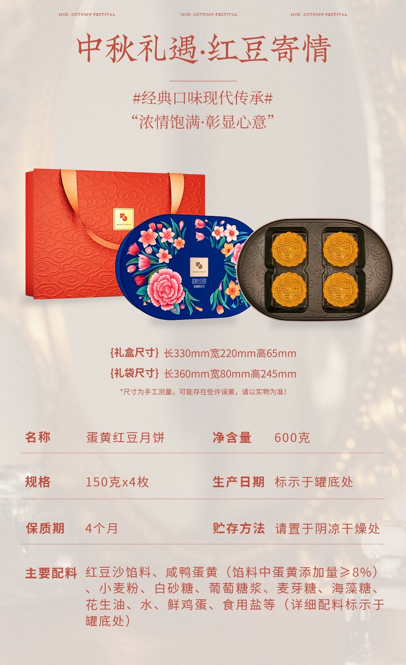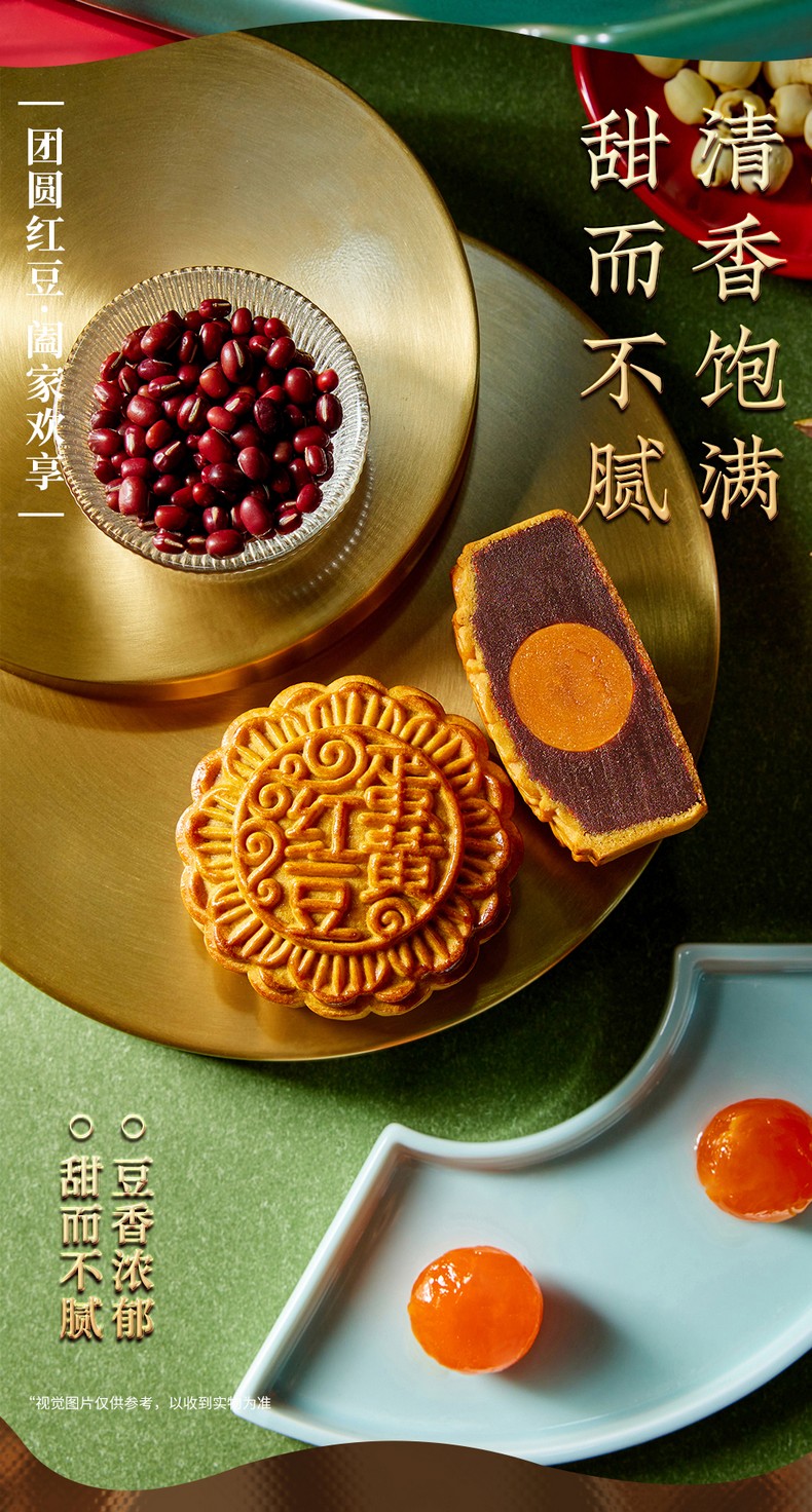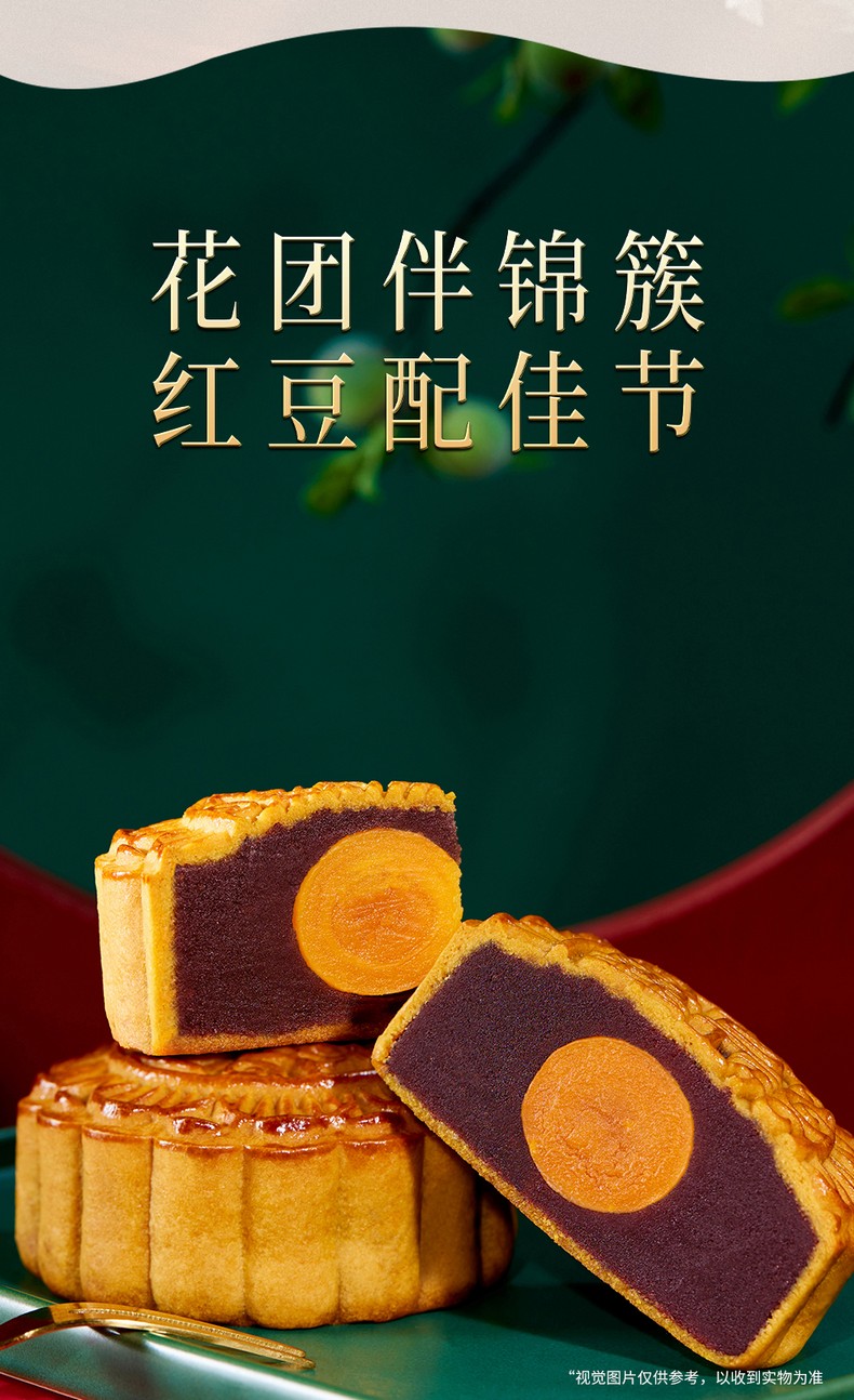 荣华锦绣红豆颂系列 蛋黄红豆月饼 月饼礼盒 600g