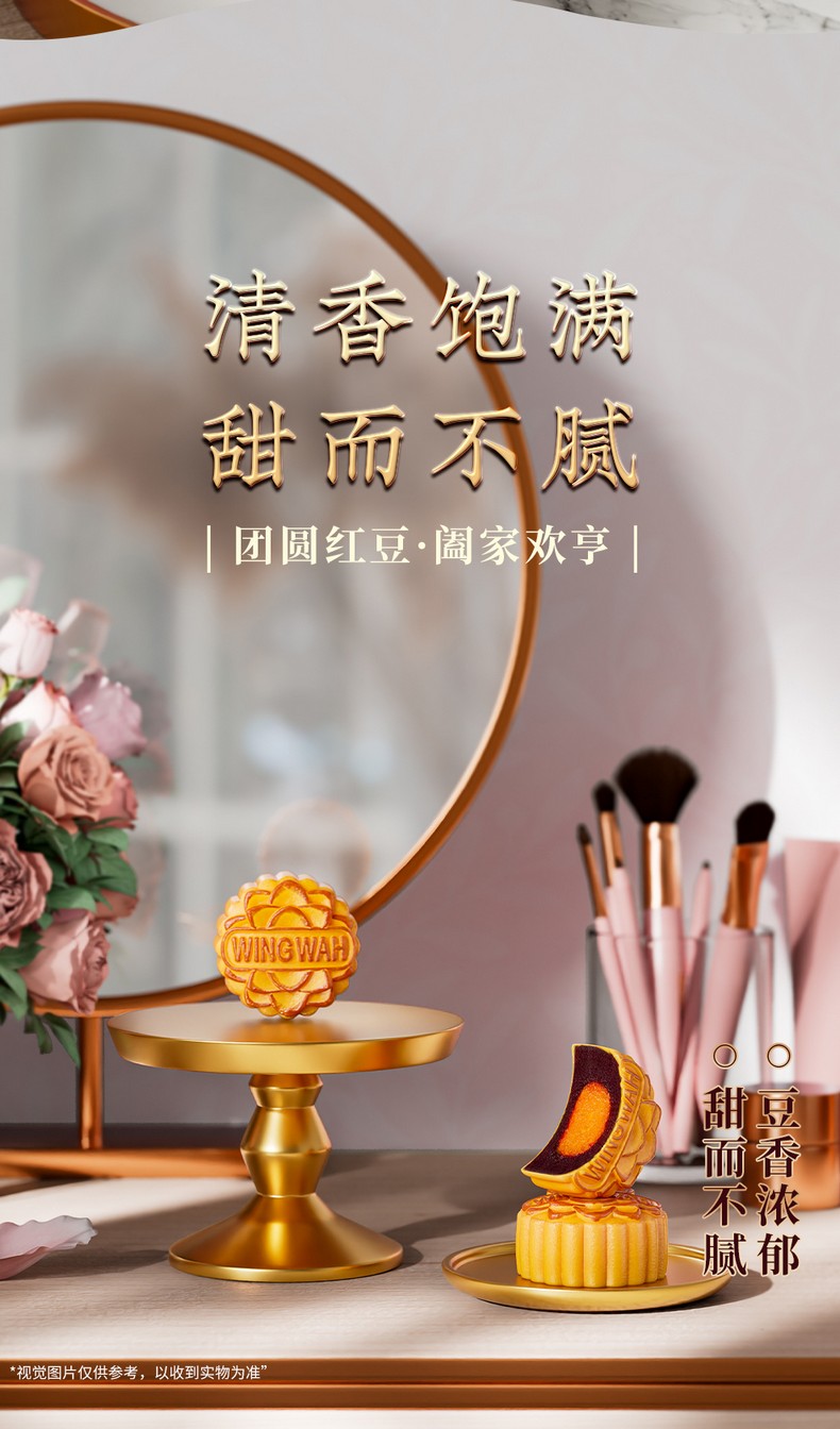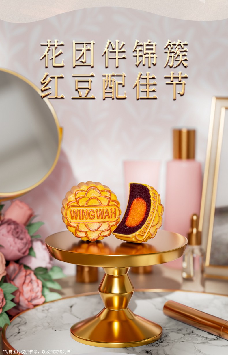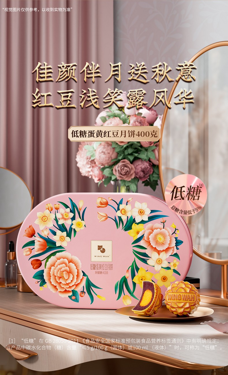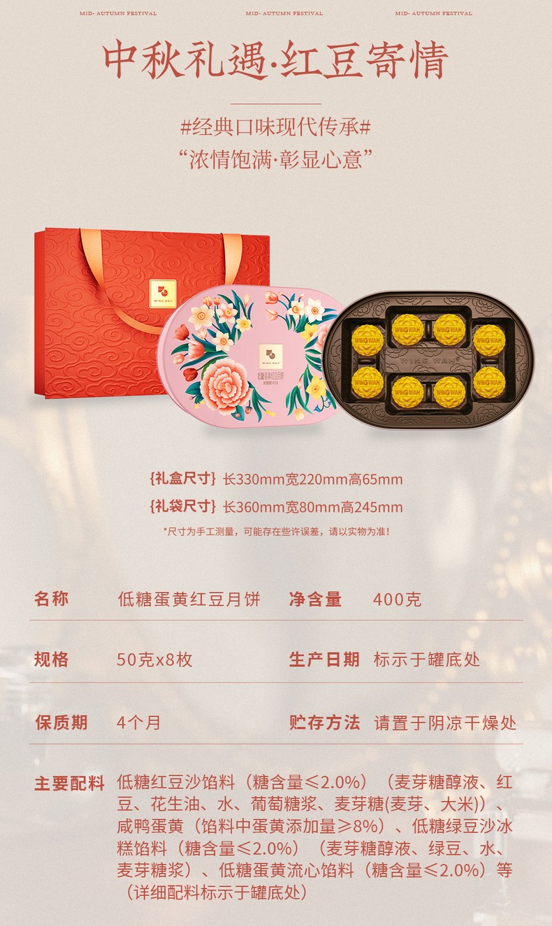 荣华锦绣红豆颂系列 低糖蛋黄红豆月饼 月饼礼盒400g