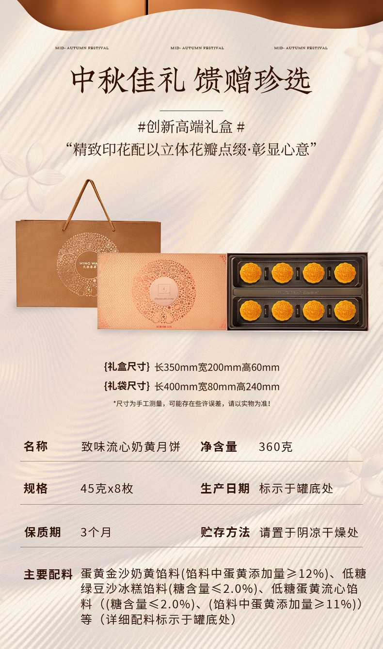 荣华元气黑芝麻系列 致味流心奶黄月饼 月饼礼盒360g