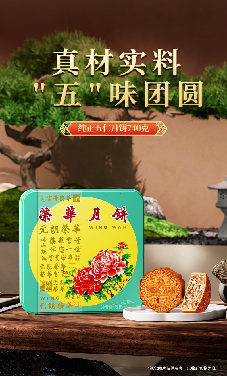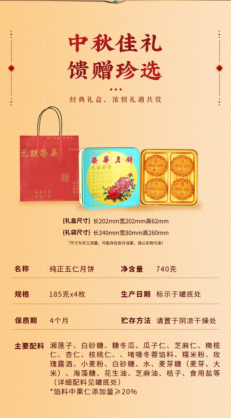 荣华花好月圆系列 纯正五仁月饼 月饼礼盒740g