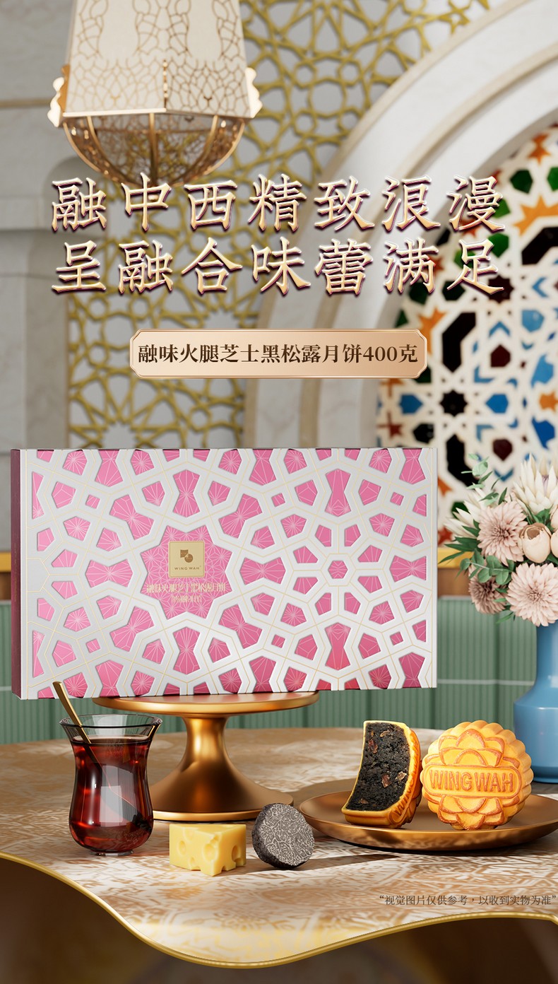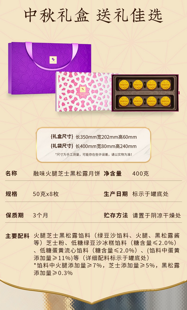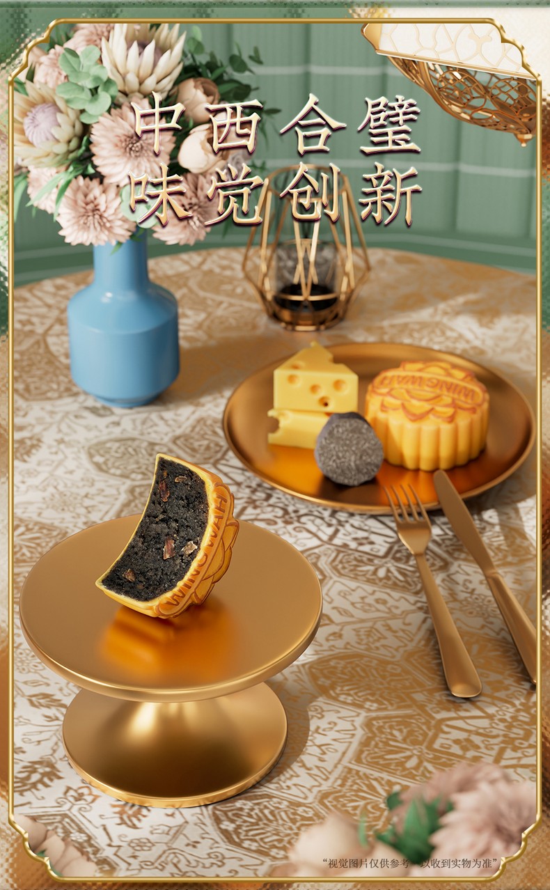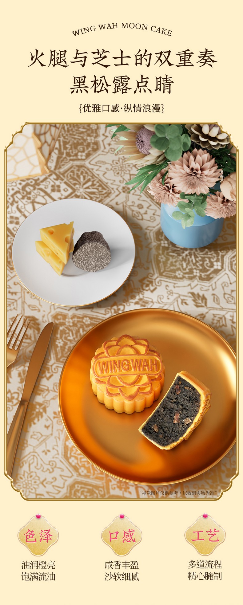 荣华融味Fusion荟彩系列 融味火腿芝士黑松露月饼 月饼礼盒400g