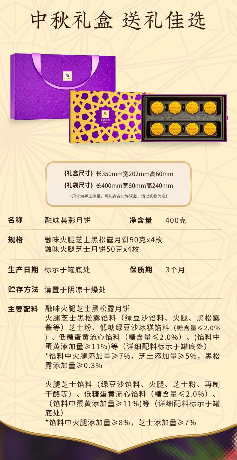 荣华融味Fusion荟彩系列 融味荟彩月饼 月饼礼盒400g