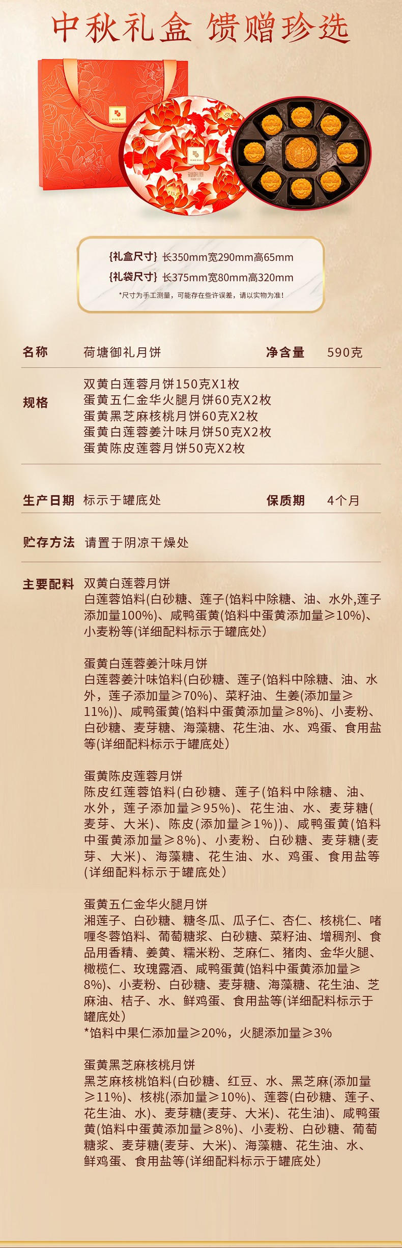 荣华荷塘荟彩系列 荷塘御礼月饼 月饼礼盒590g