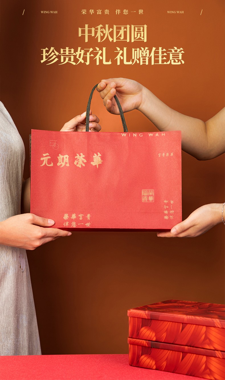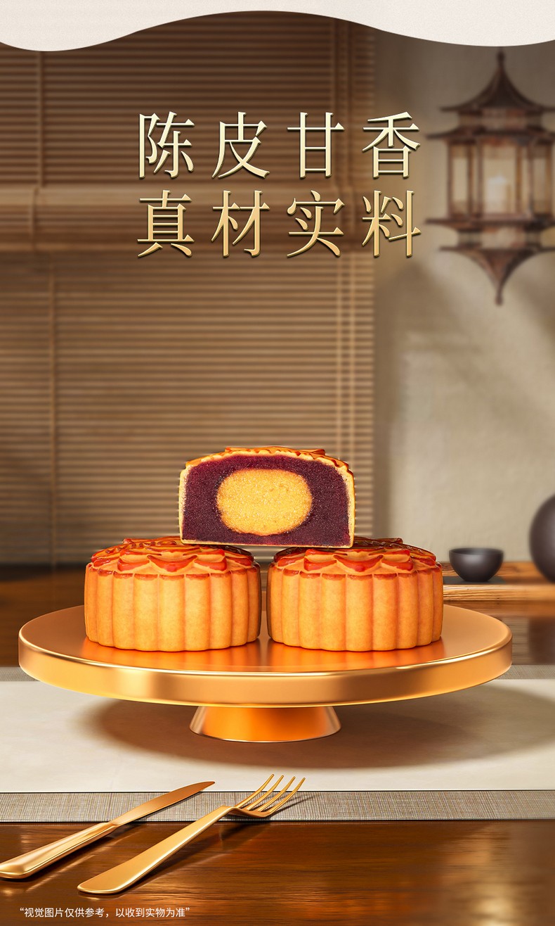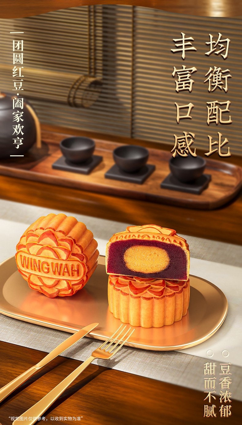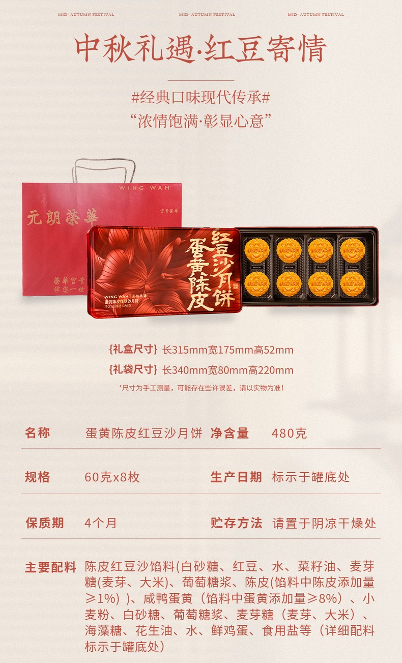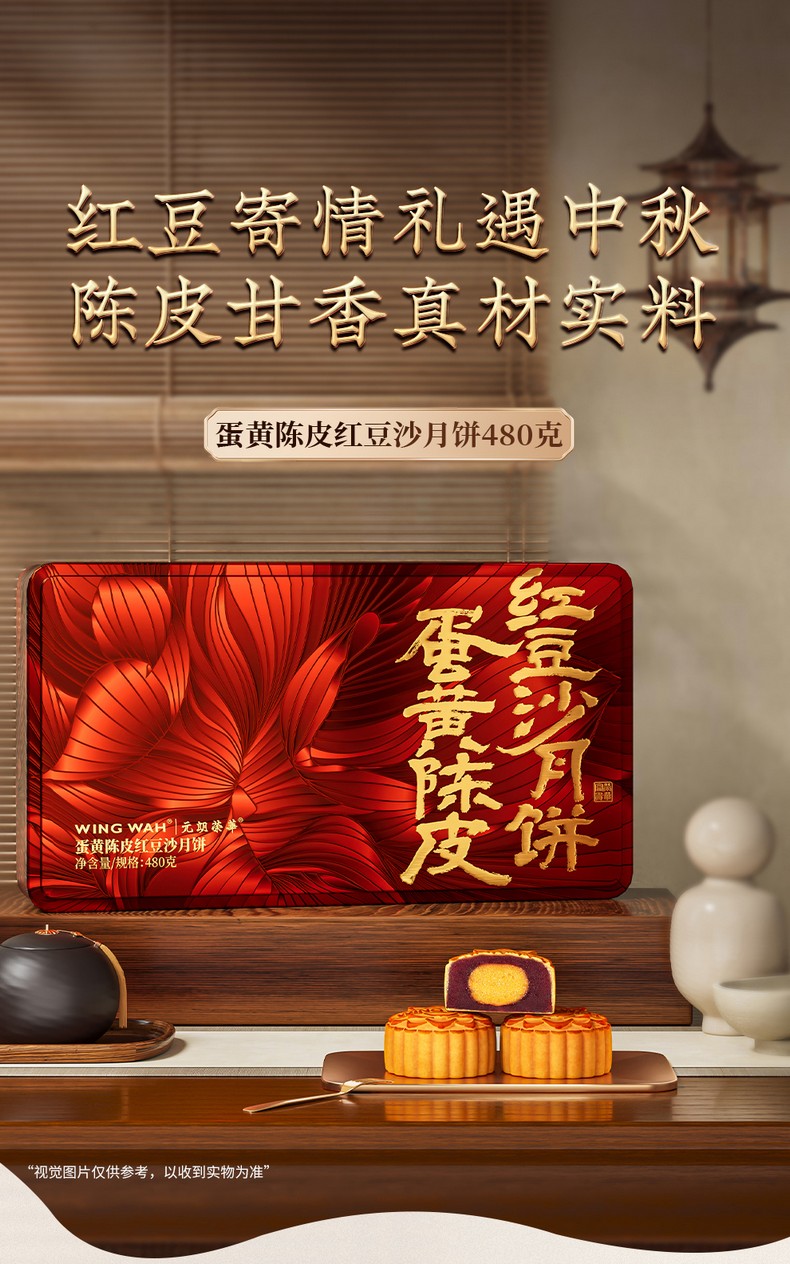 荣华锦绣红豆颂系列 蛋黄陈皮红豆沙月饼 月饼礼盒 480g