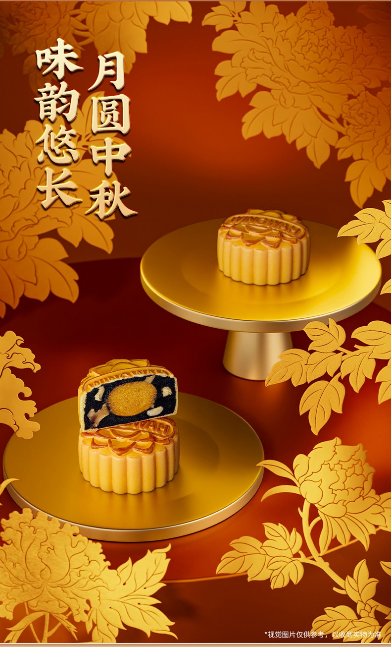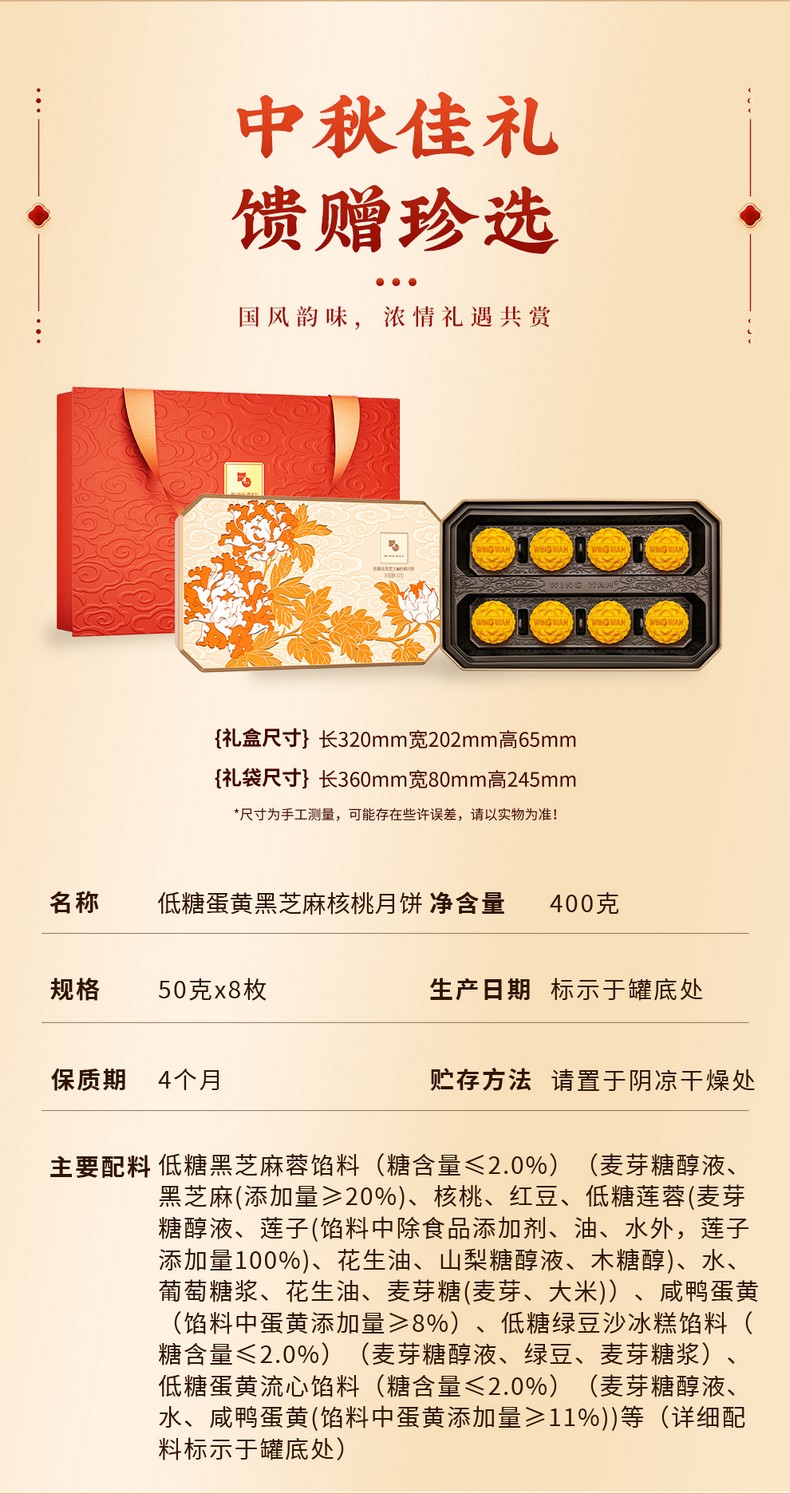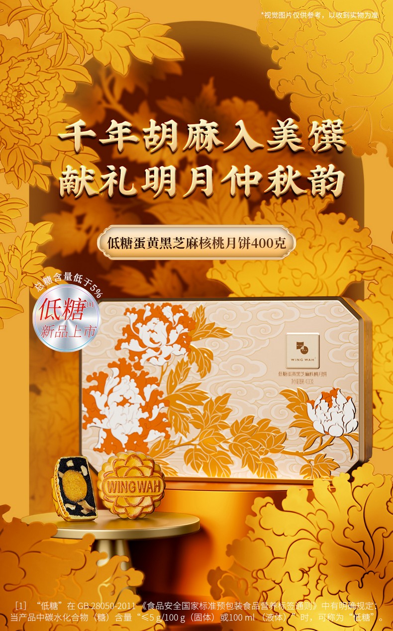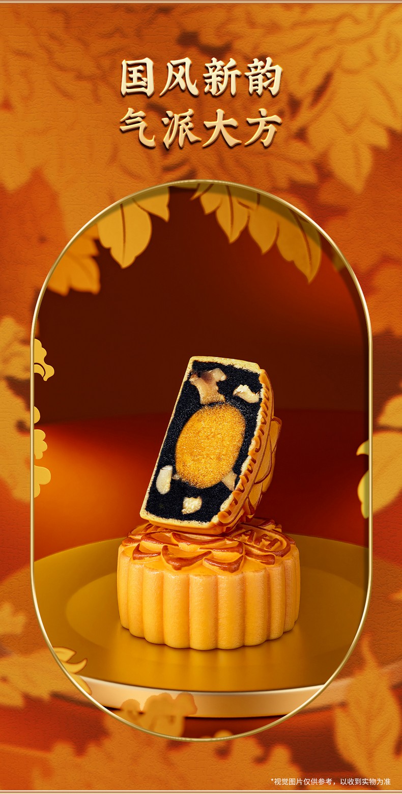 荣华元气黑芝麻系列 低糖蛋黄黑芝麻核桃月饼 月饼礼盒400g