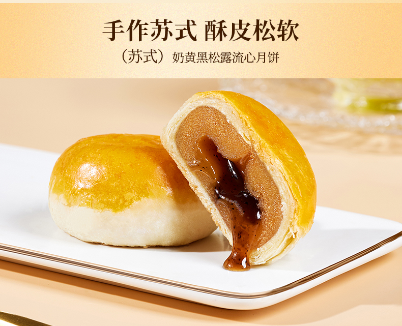 1、60g(苏式)奶黄黑松露流心月饼*1