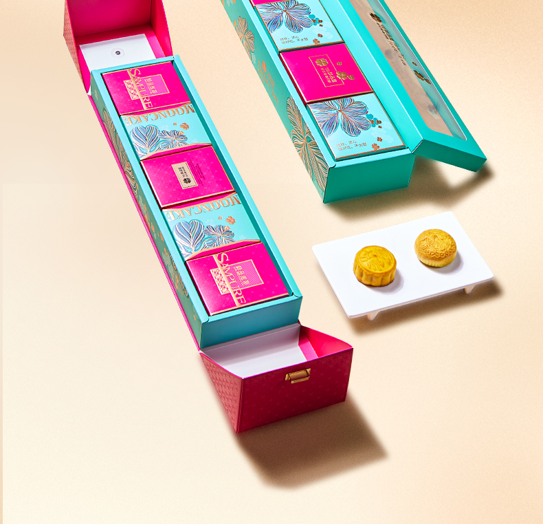 【卖点】:礼盒采用手提式双层盒型,斜切包角设计,以简约灵动线条勾勒经典四叶草图案、色彩渐变,烫金工艺,整体风格时尚精致;内含4式13饼10味,新式、苏式、广式、港式四种风格月饼,层层有惊喜,层层有美味!