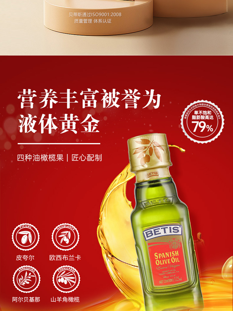 贝蒂斯特级初榨橄榄油125ML*1圆筒礼盒装