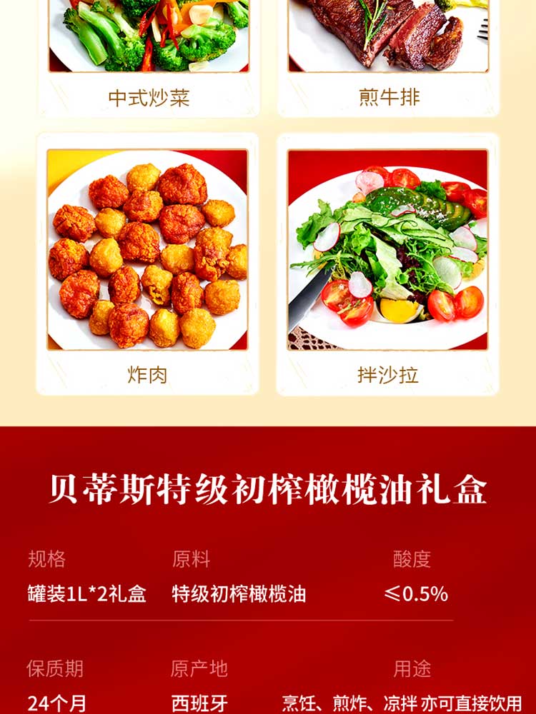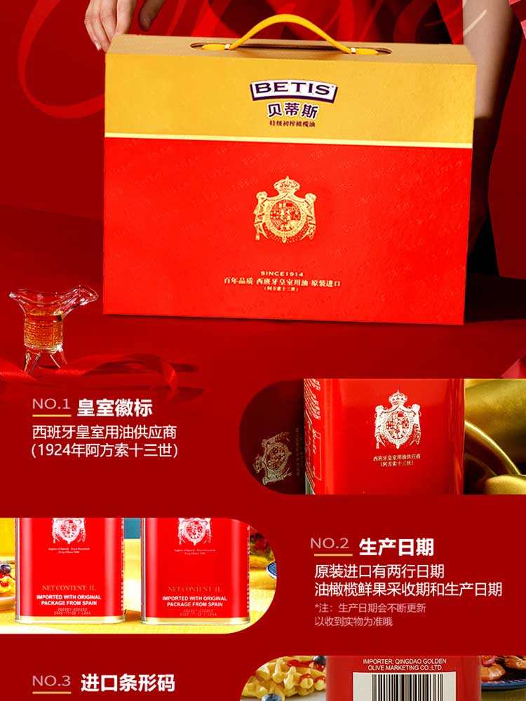 贝蒂斯特级初榨橄榄油1L*2礼盒装