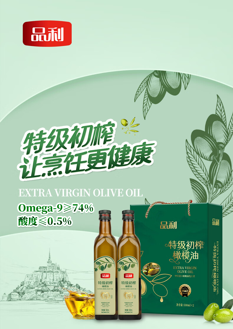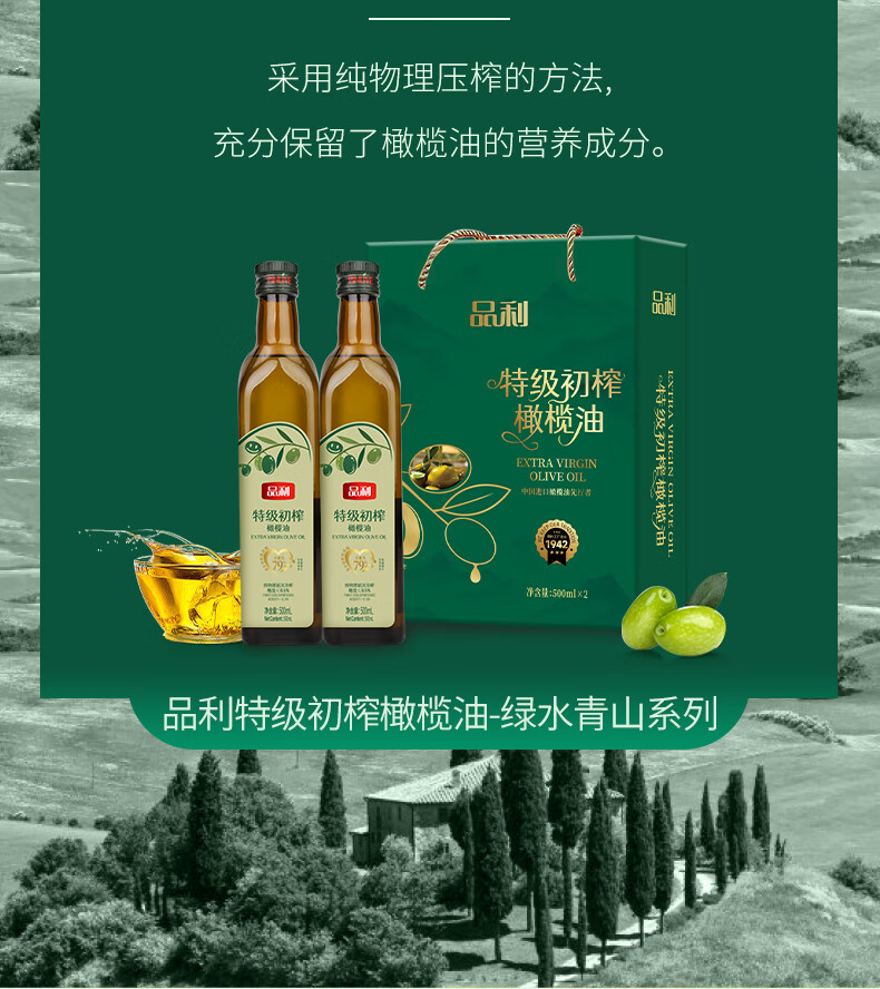 品利特级初榨橄榄油绿水青山500mlx2礼盒