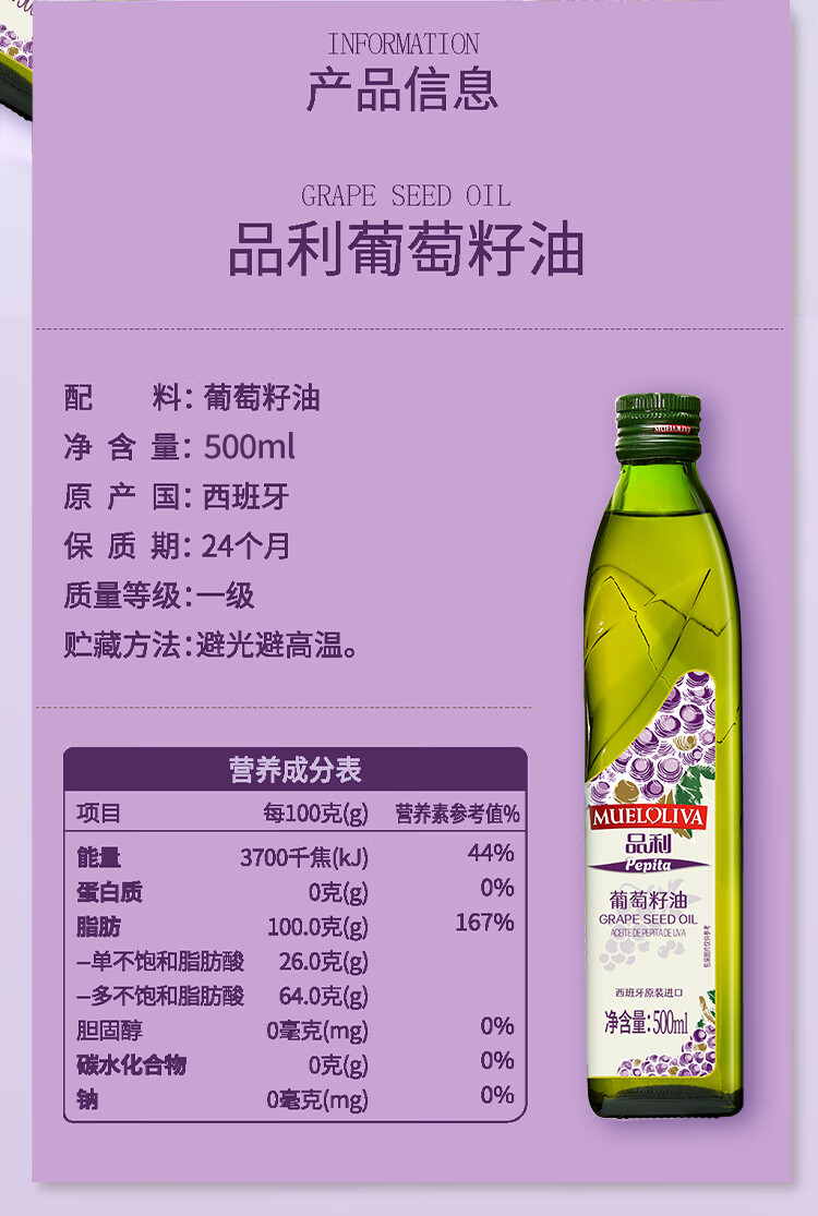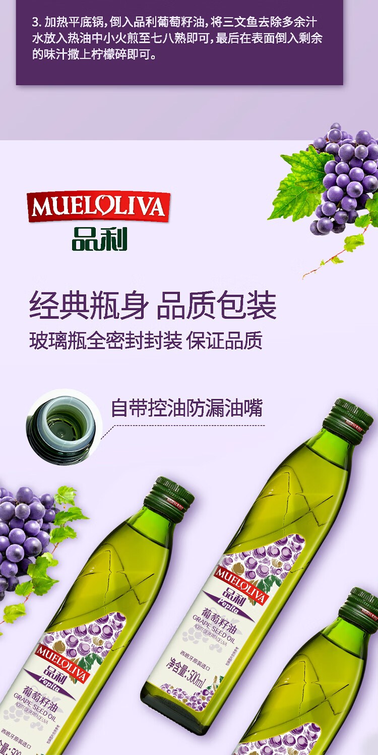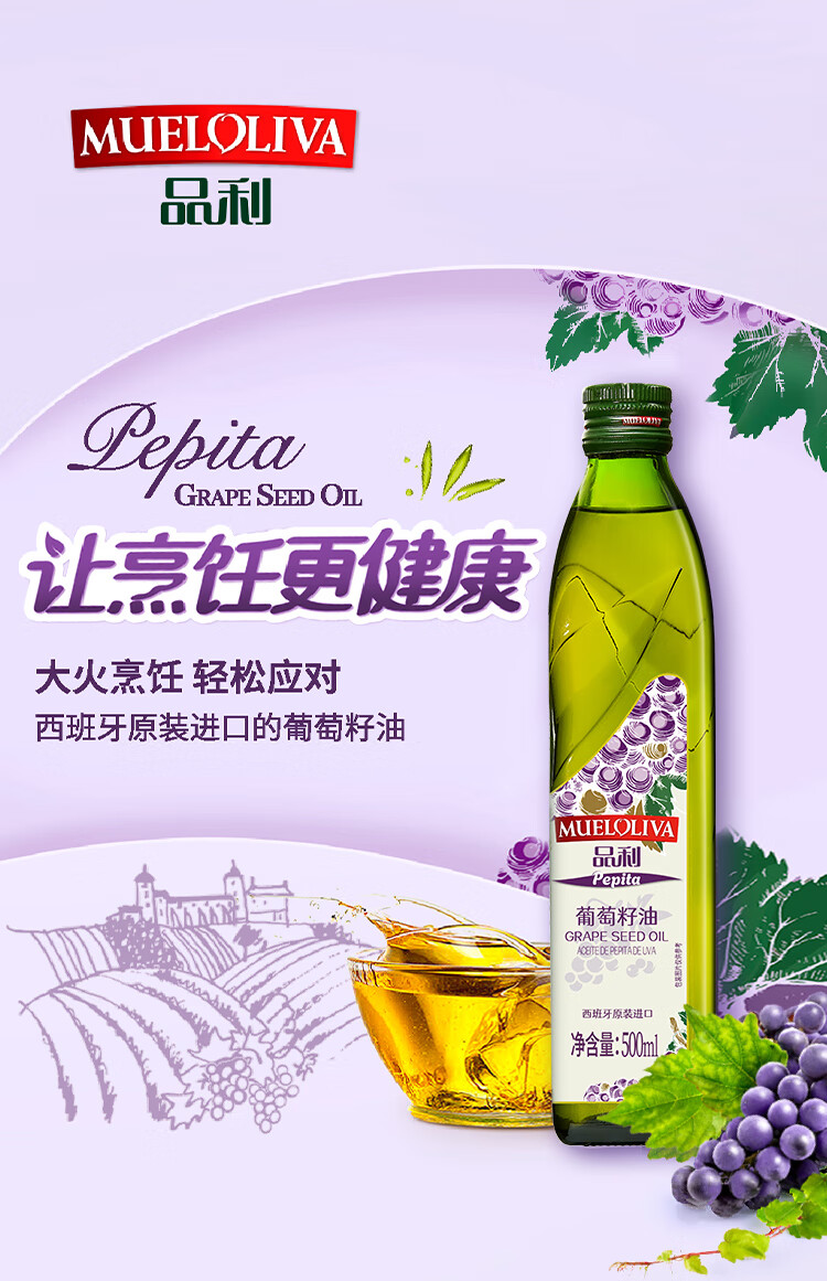 品利 西班牙原装进口葡萄籽油500ml*2礼盒装