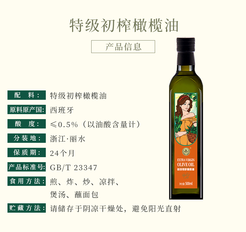 恩纳尔 雅致经典 特级初榨橄榄油500ml*2
