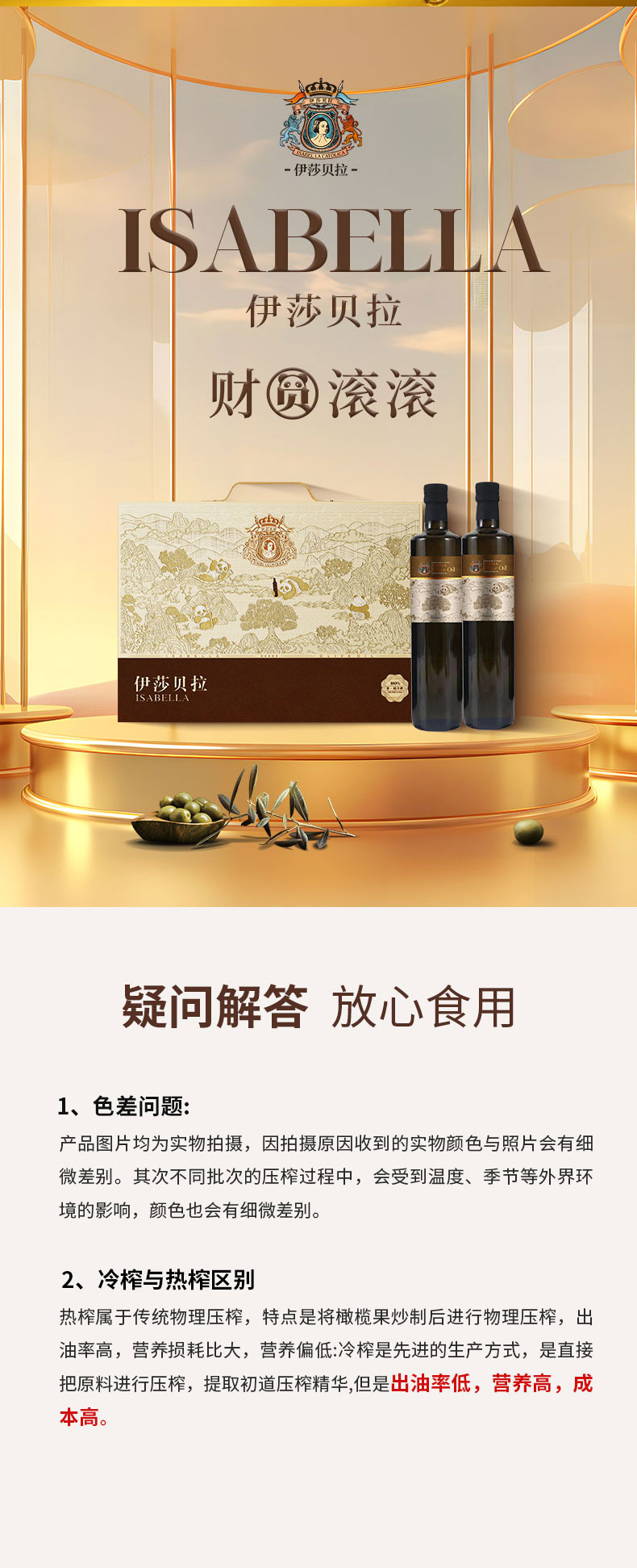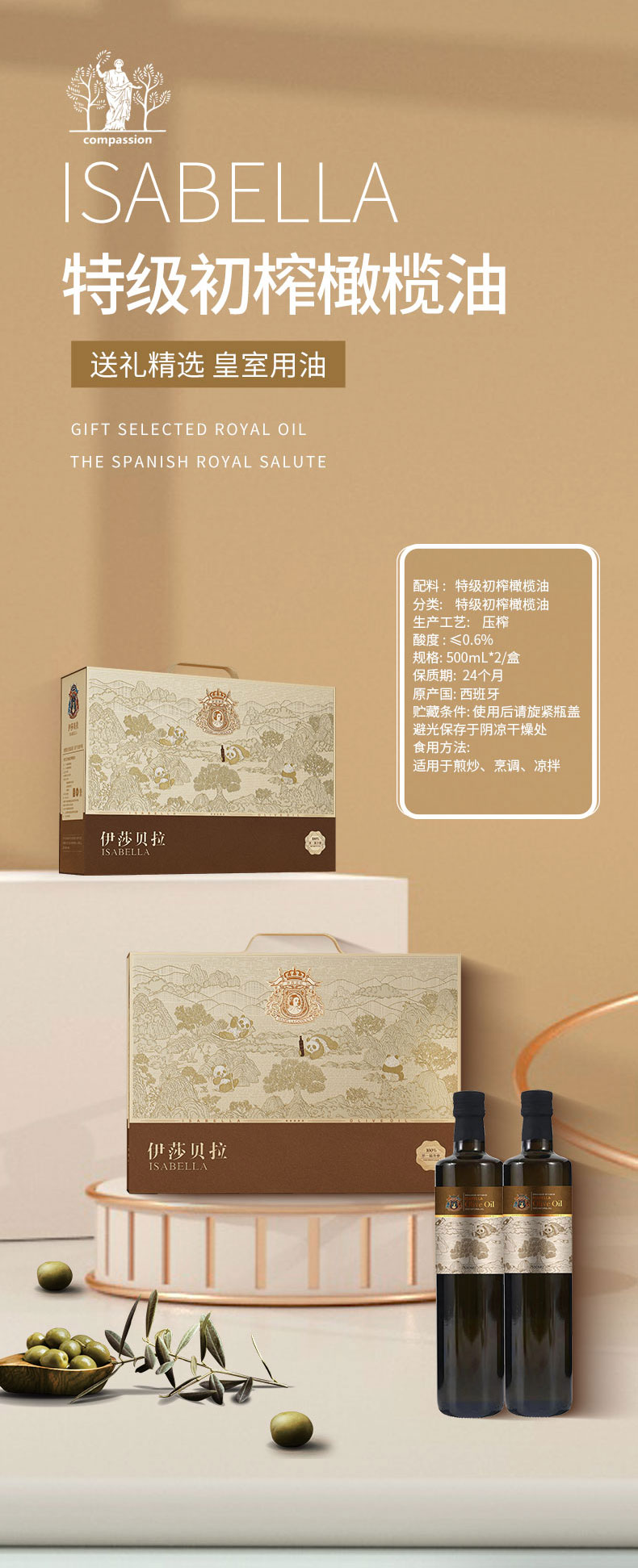 伊莎贝拉 财圆滚滚<-熊猫款> 特级初榨橄榄油500ml*2