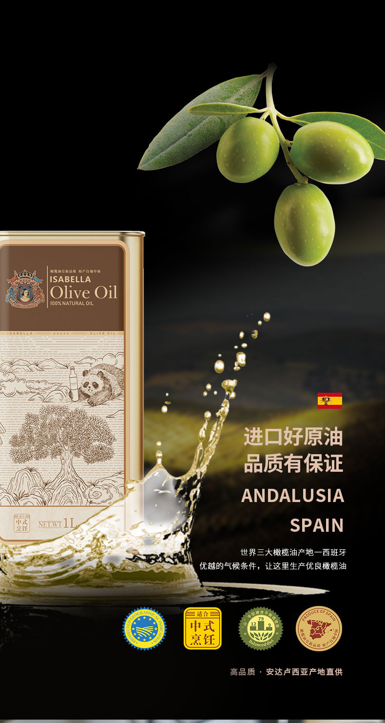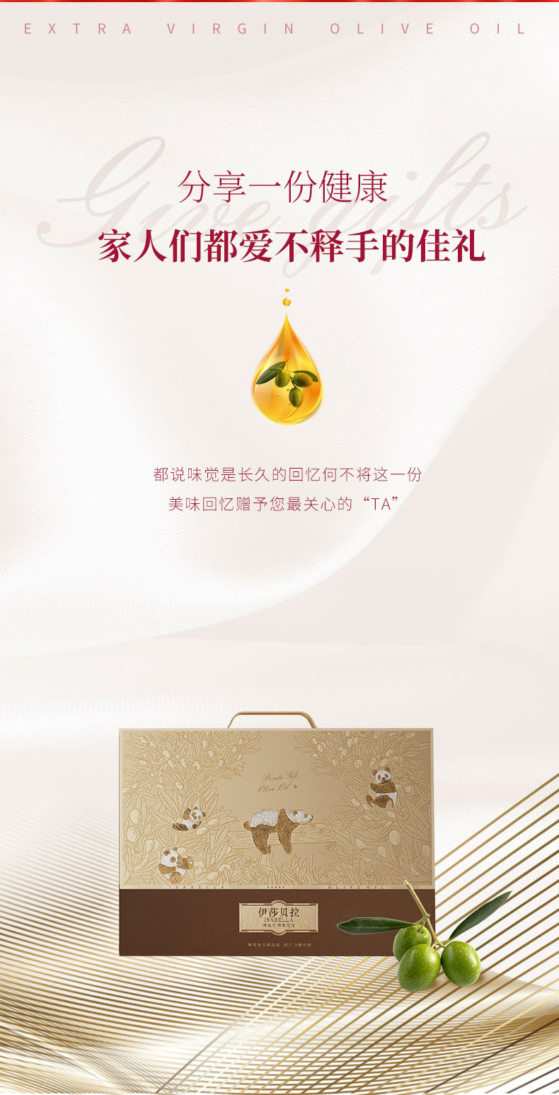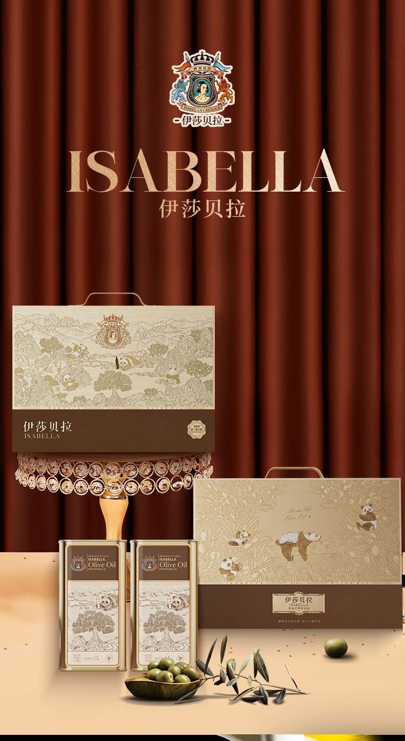伊莎贝拉 财圆滚滚<-熊猫款> 特级初榨橄榄油1L*2