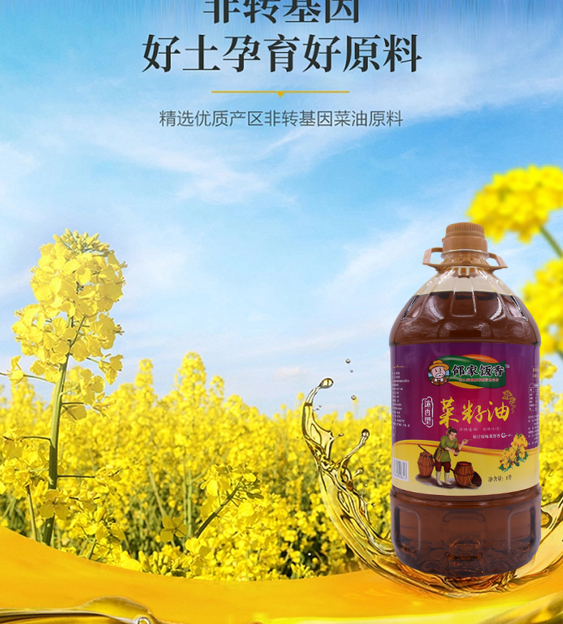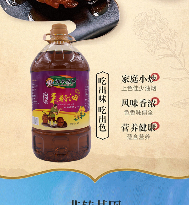 邻家饭香 非转基因 物理压榨二级菜籽油 5L/桶 LJFX156
