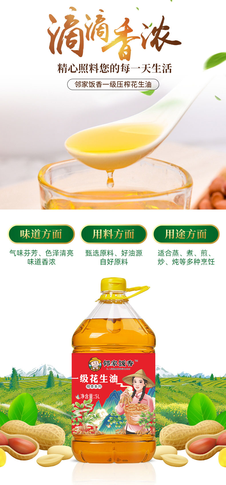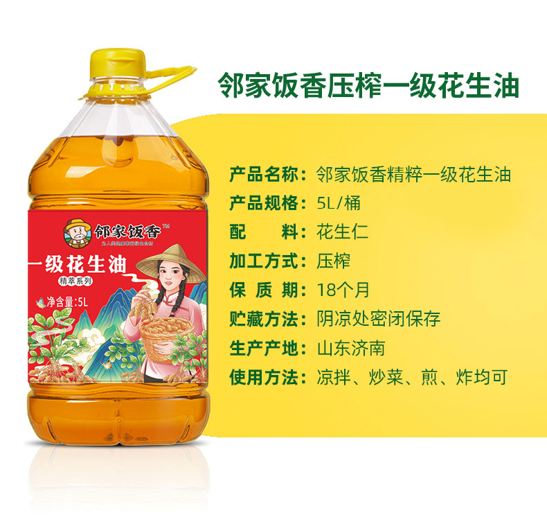 邻家饭香 物理压榨一级浓香花生油 精粹系列 5L/桶 YF186