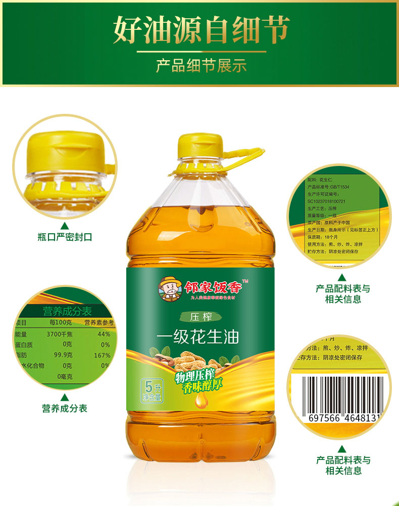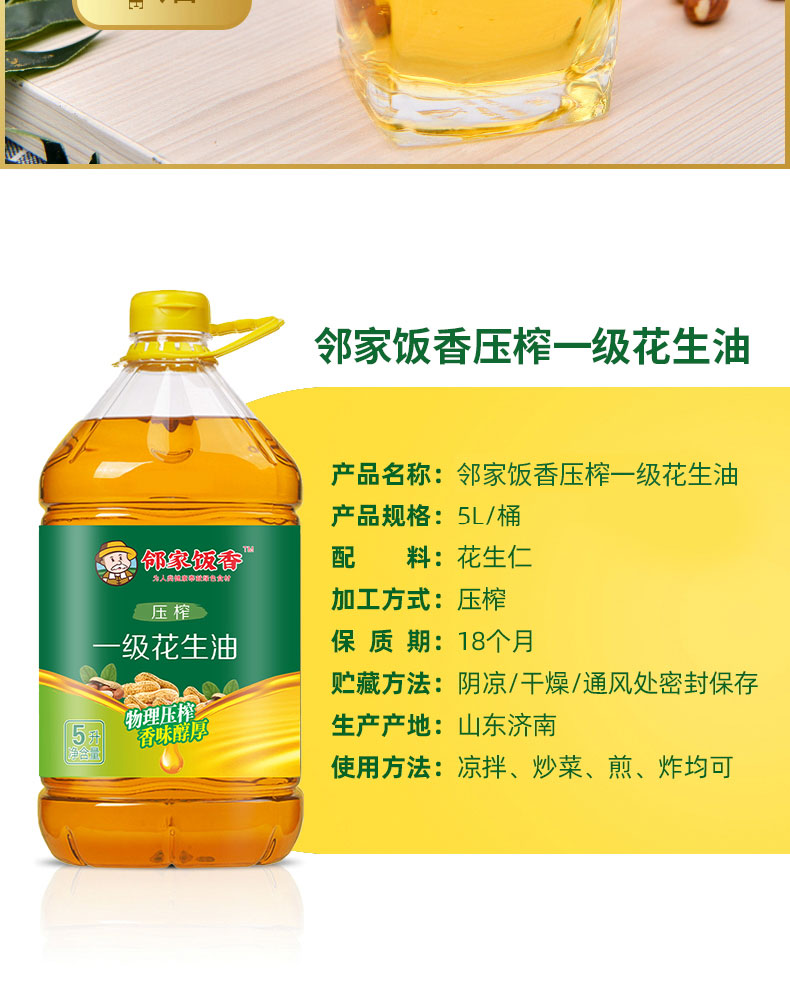 邻家饭香 物理压榨一级花生油 5L/桶 LJFX176