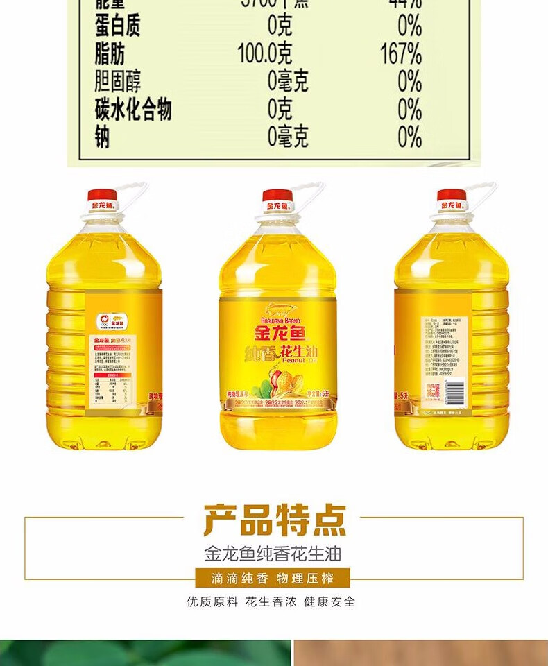 金龙鱼纯香花生油5L
