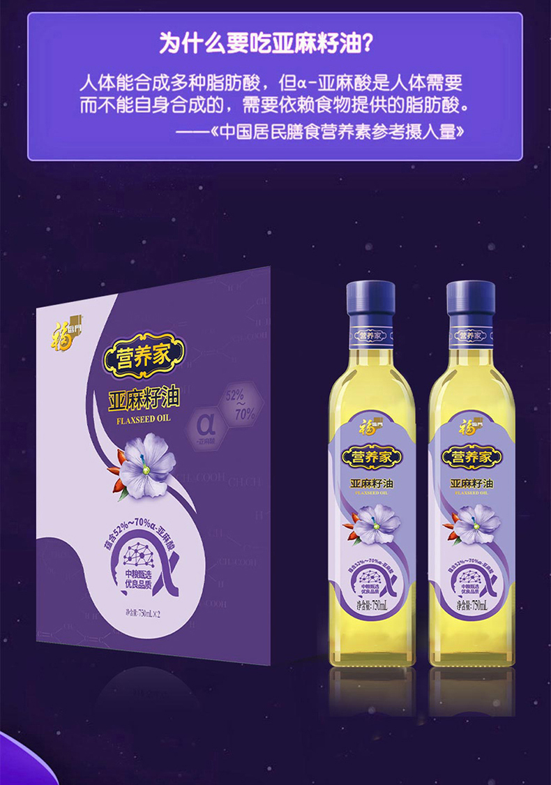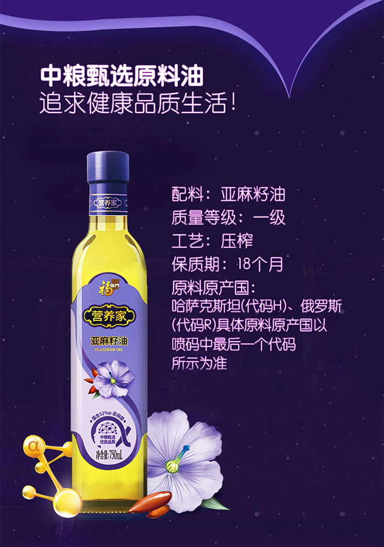 中粮福临门营养家亚麻籽油礼盒750ml*2