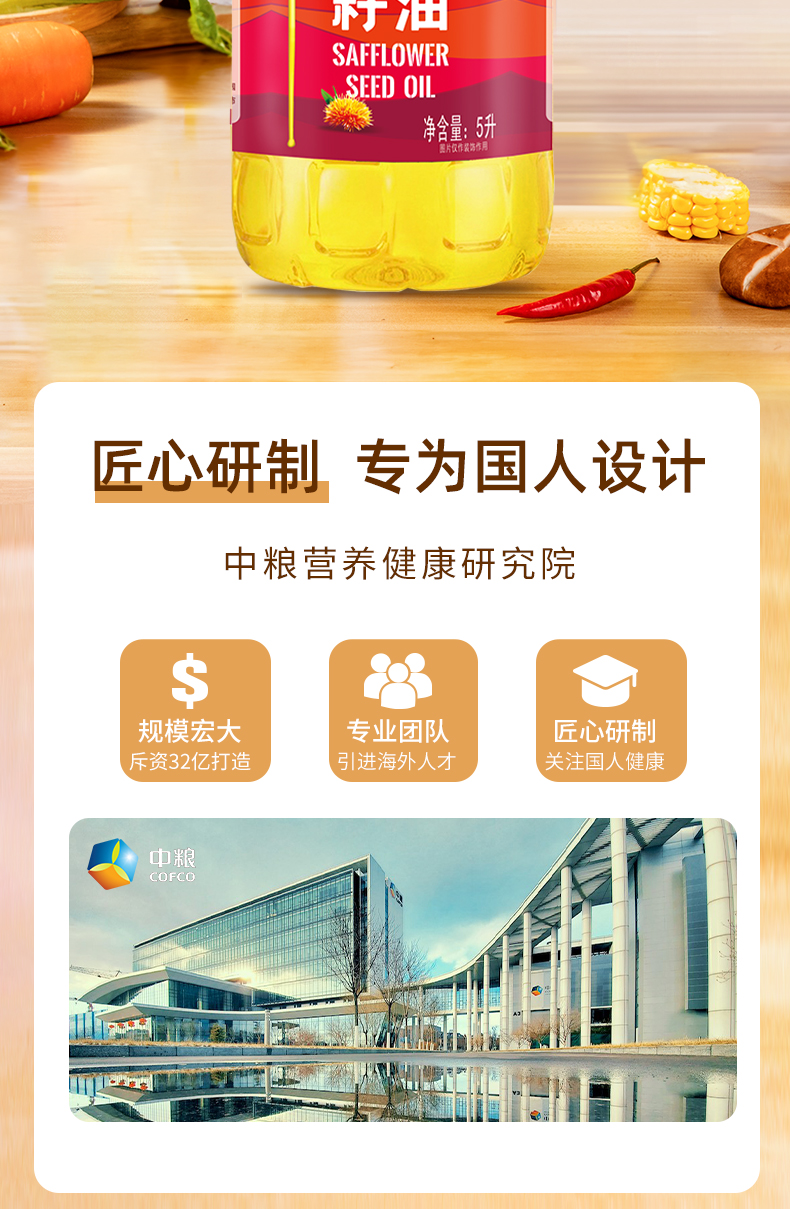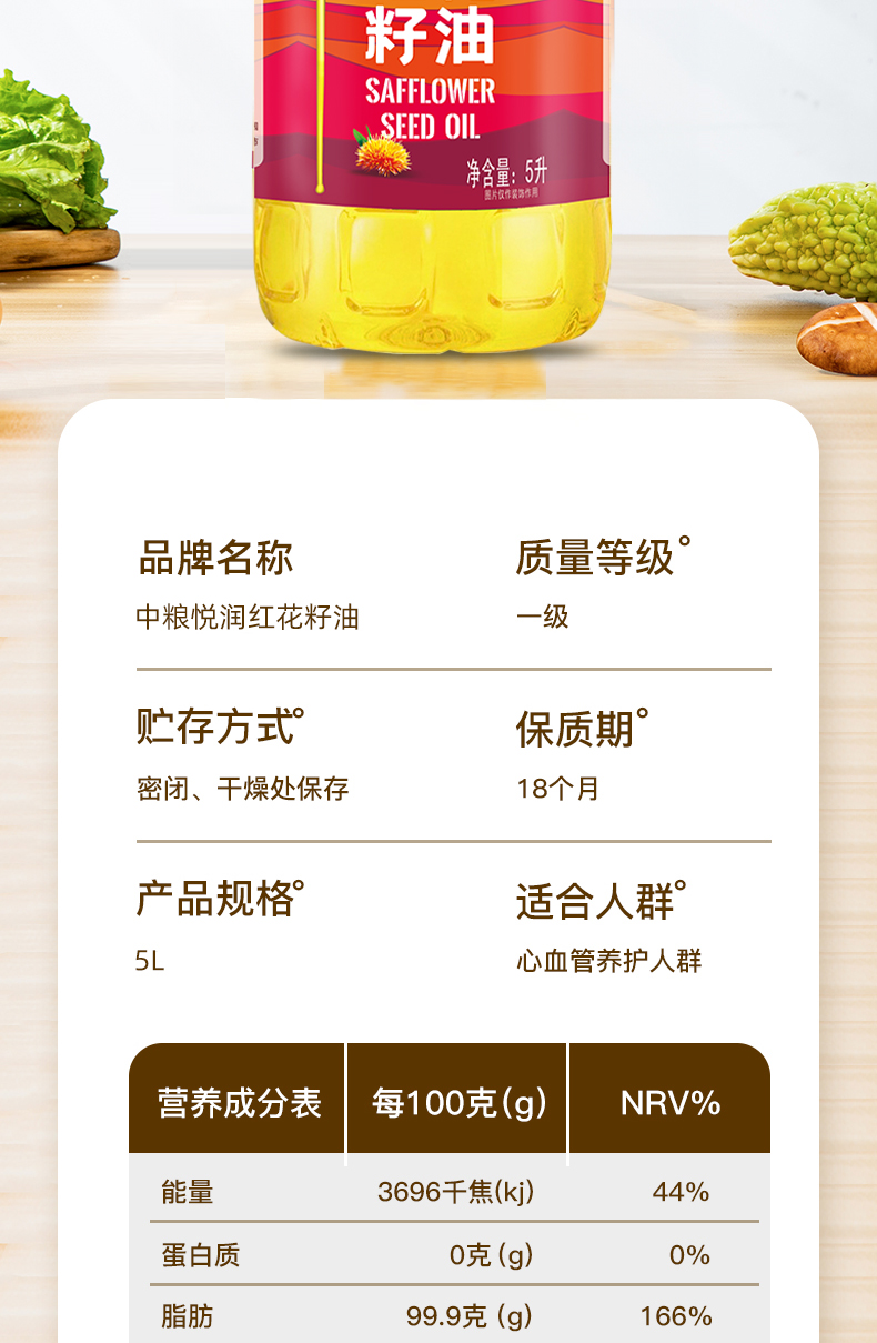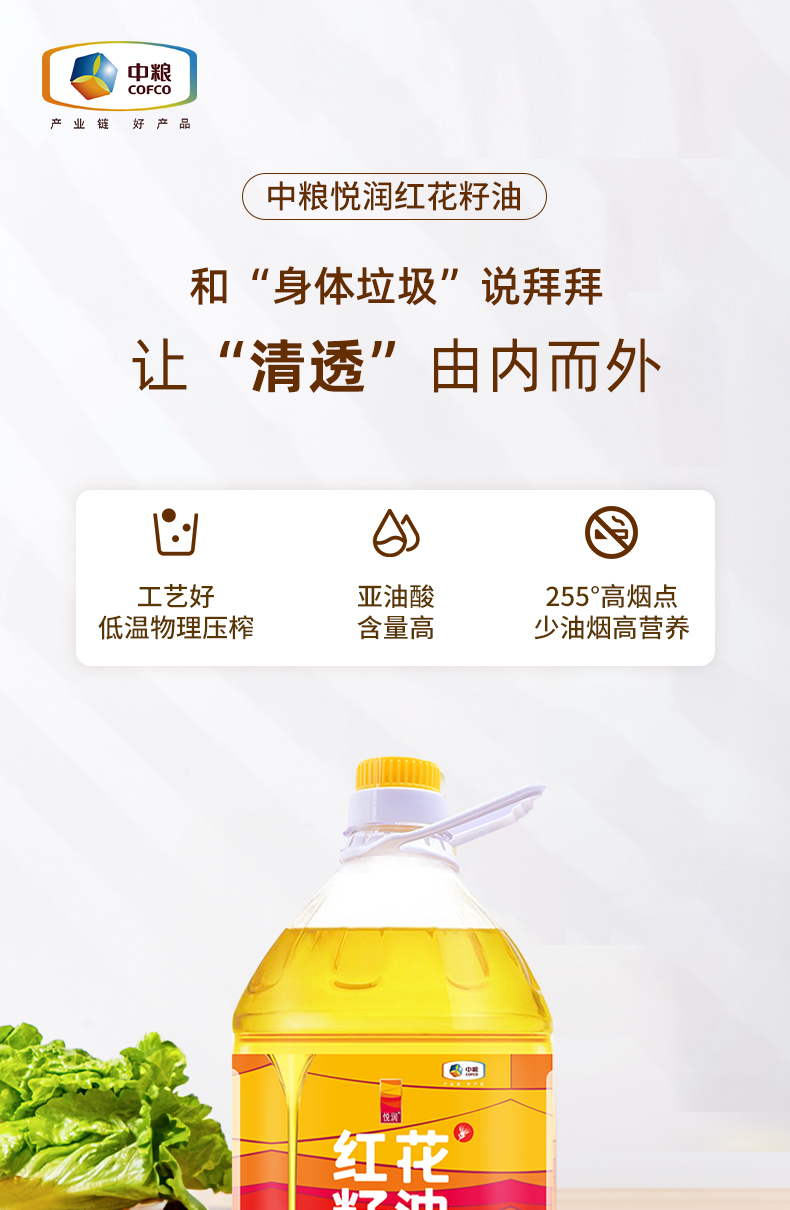 中粮悦润红花籽油5L