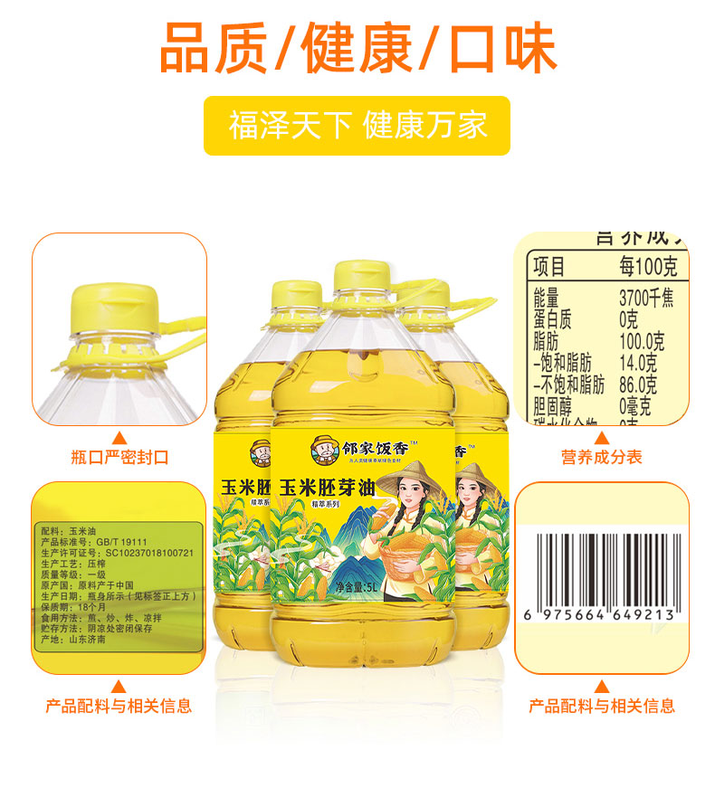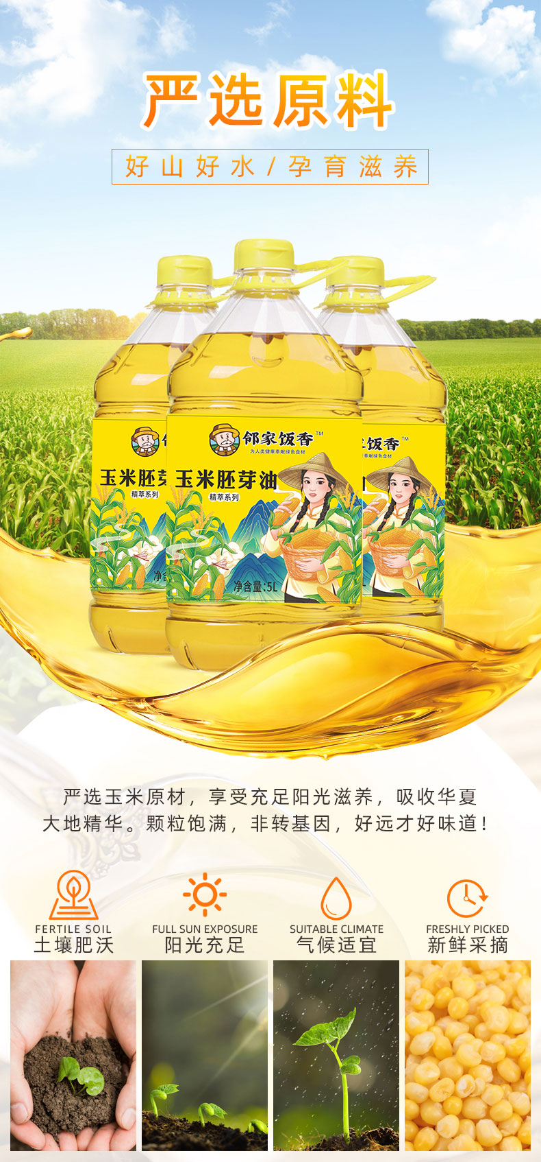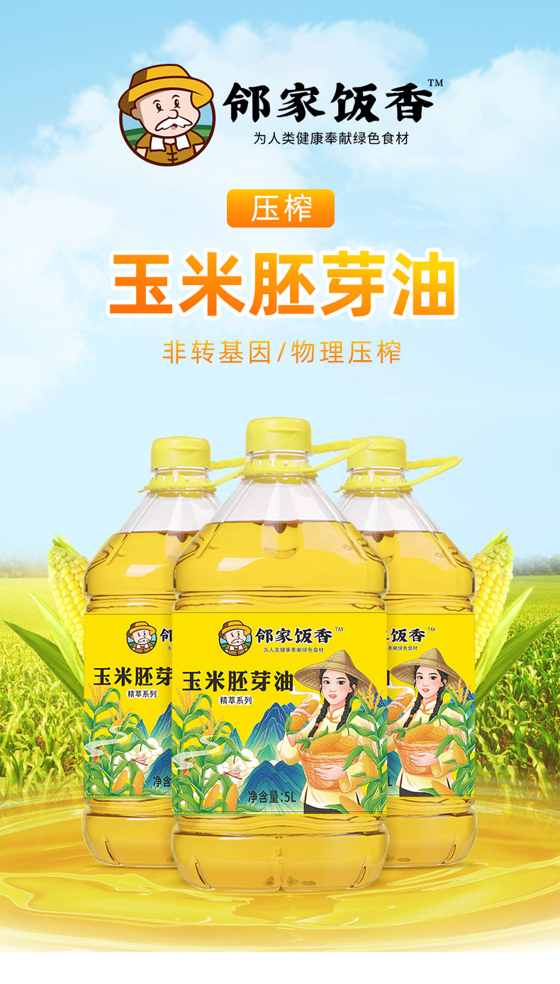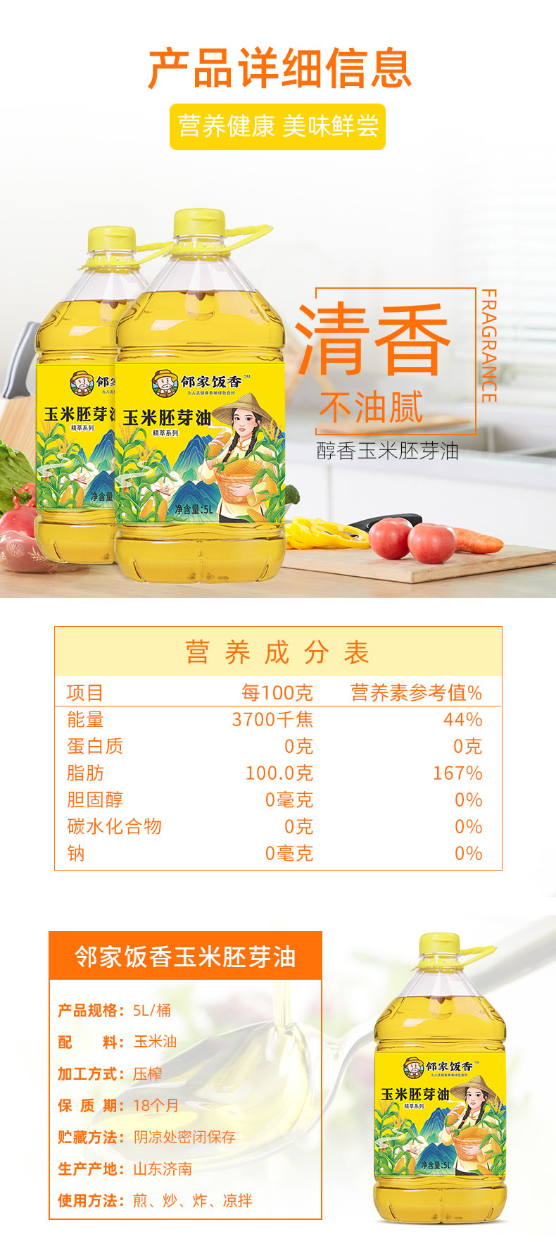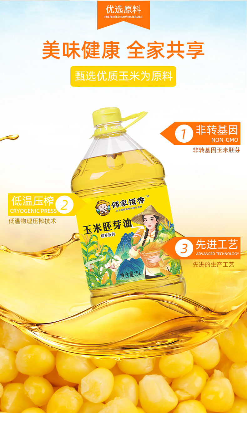 邻家饭香 非转基因 物理压榨一级玉米胚芽油 精粹系列 5L/桶 YF156