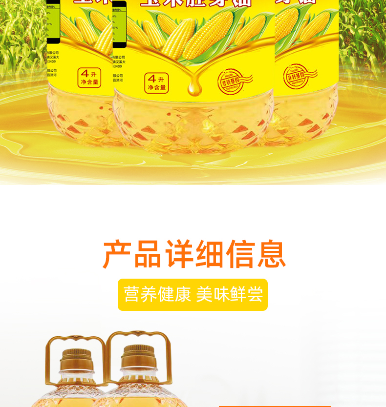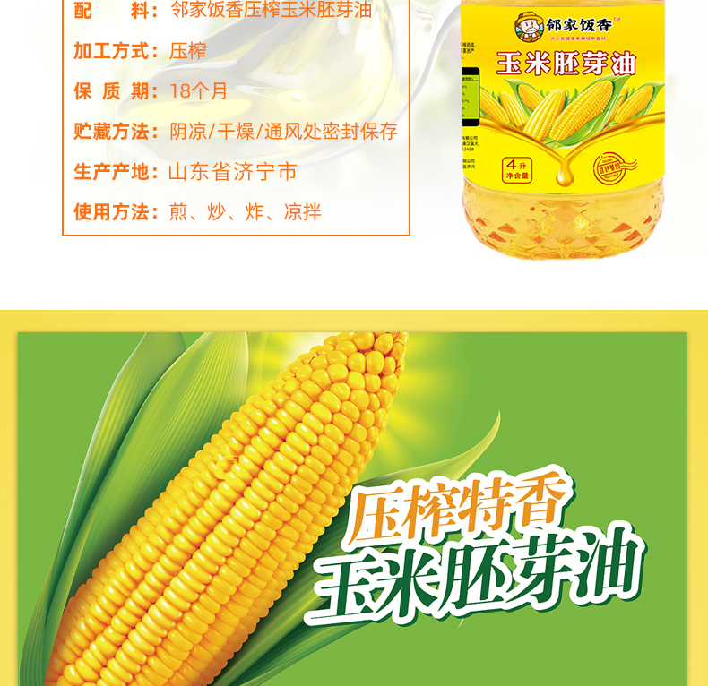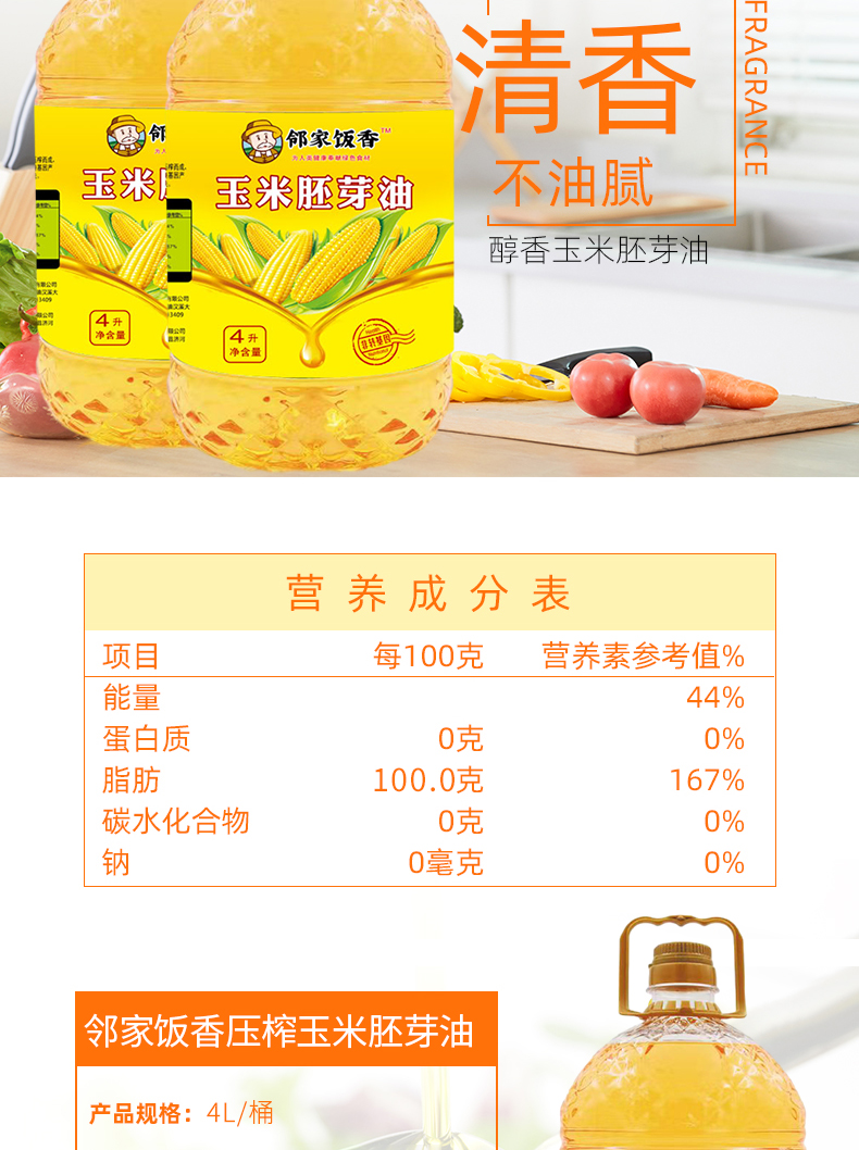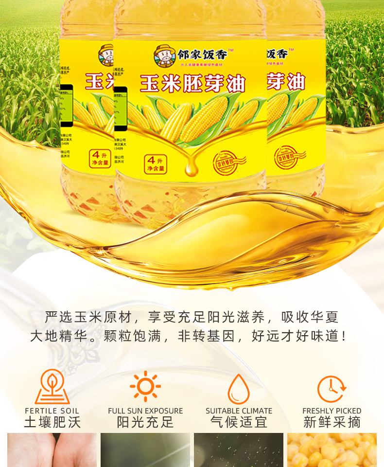 邻家饭香 非转基因 物理压榨一级玉米胚芽油 4L/桶 LJFX129